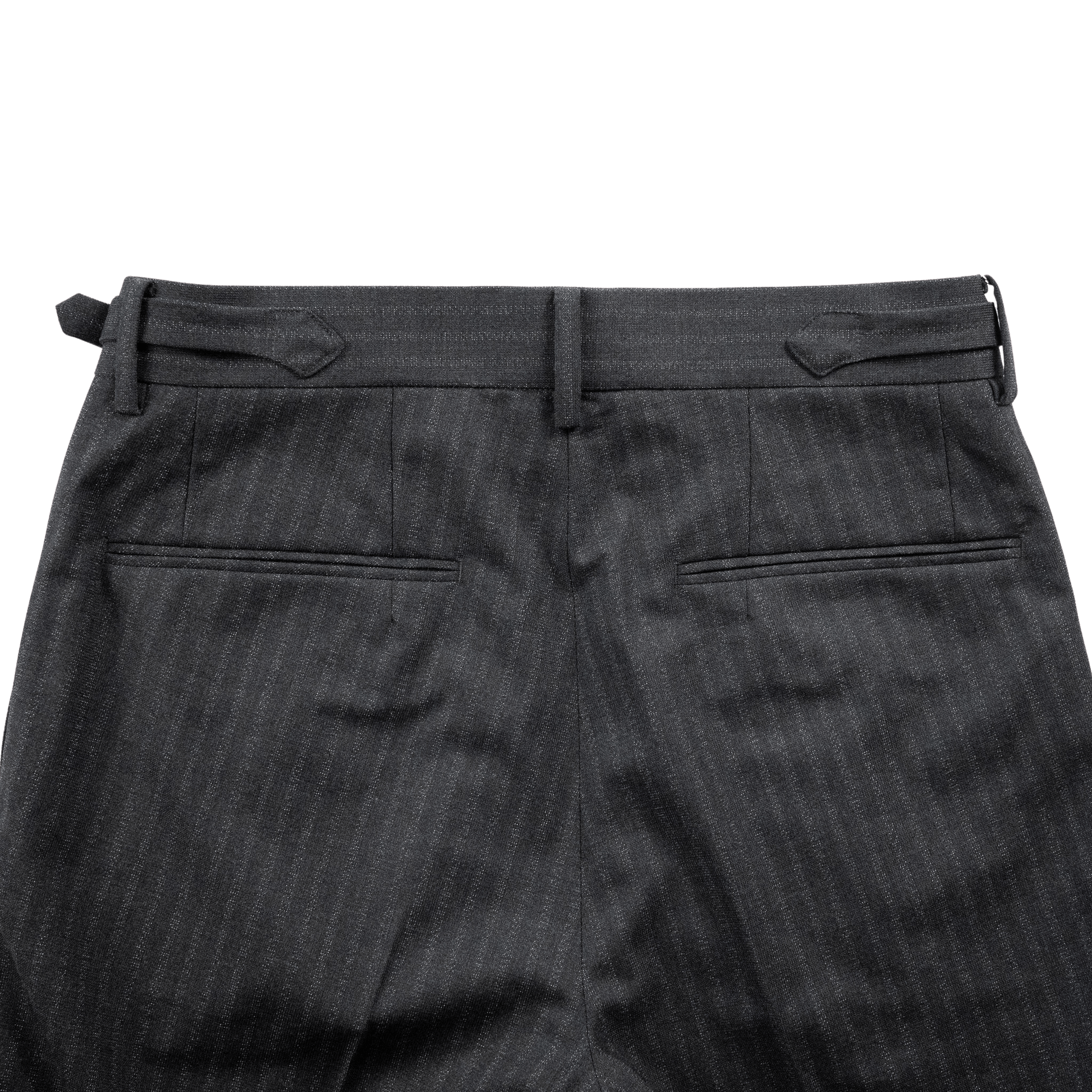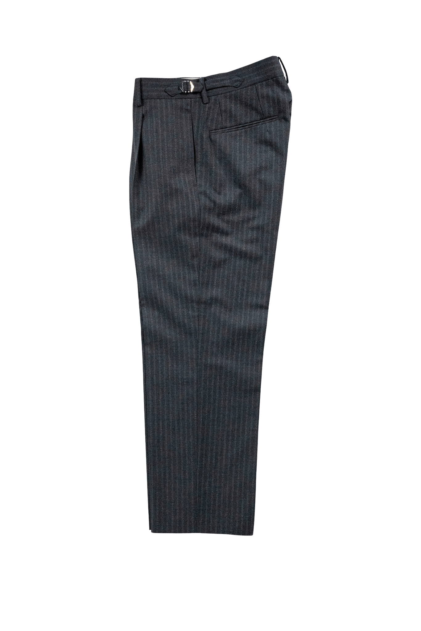 国内のテーラーや縫製工場などで使われることのなかった生地を引き取り、一本のスラックスとして形にしています。