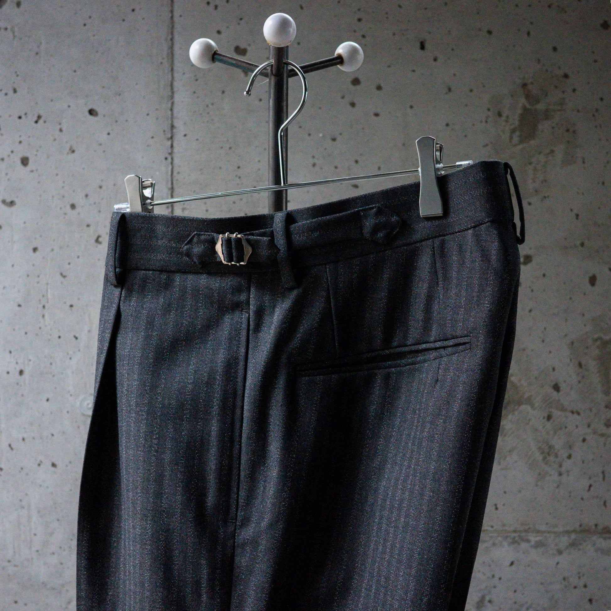 数あるデッドストックの中から、今シーズンは五種類の生地を選び、五本のスラックスを製作していただきました。