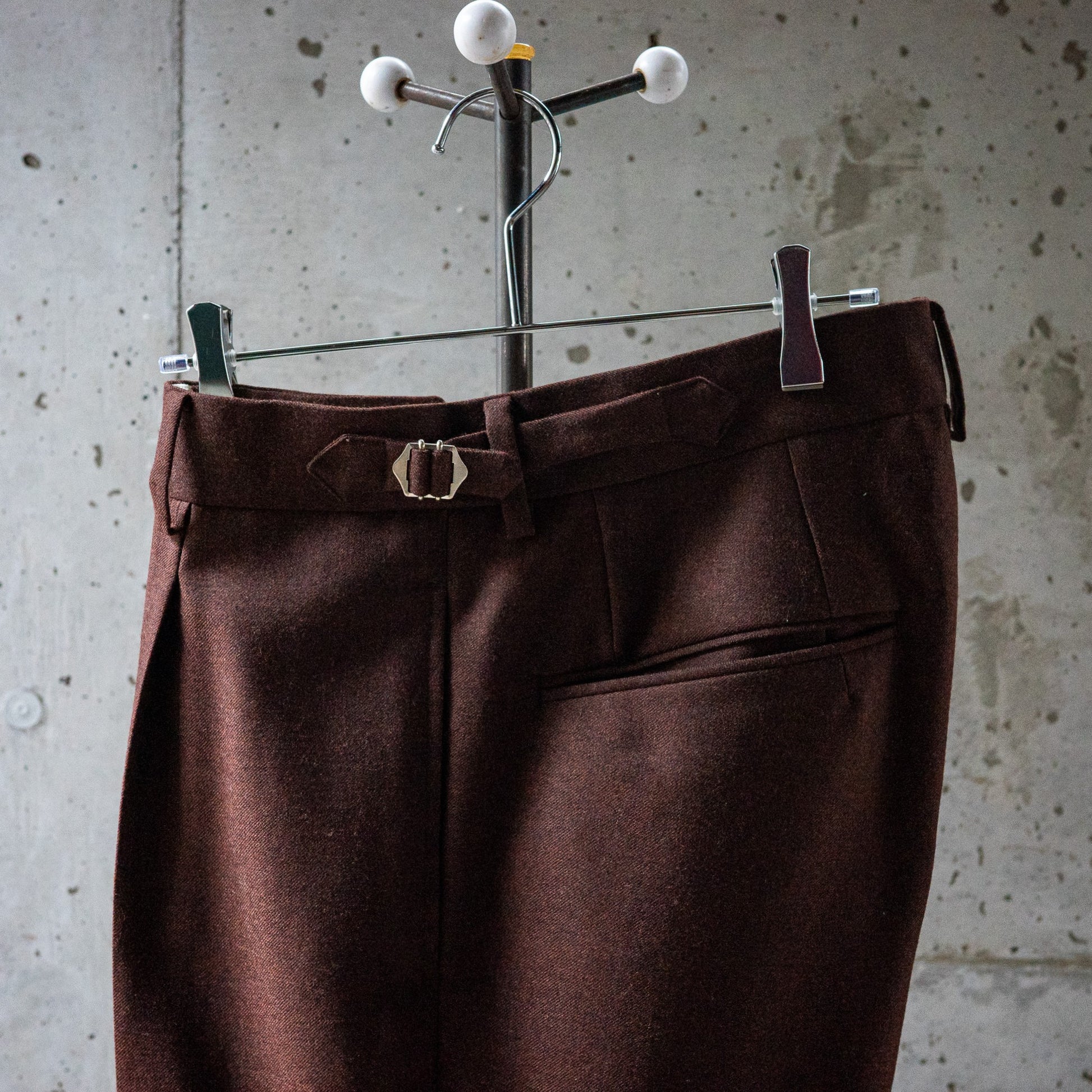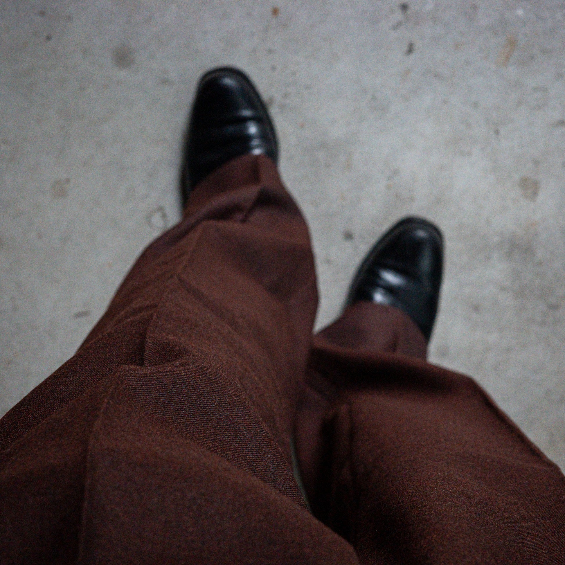 数あるデッドストックの中から、今シーズンは五種類の生地を選び、五本のスラックスを製作していただきました。