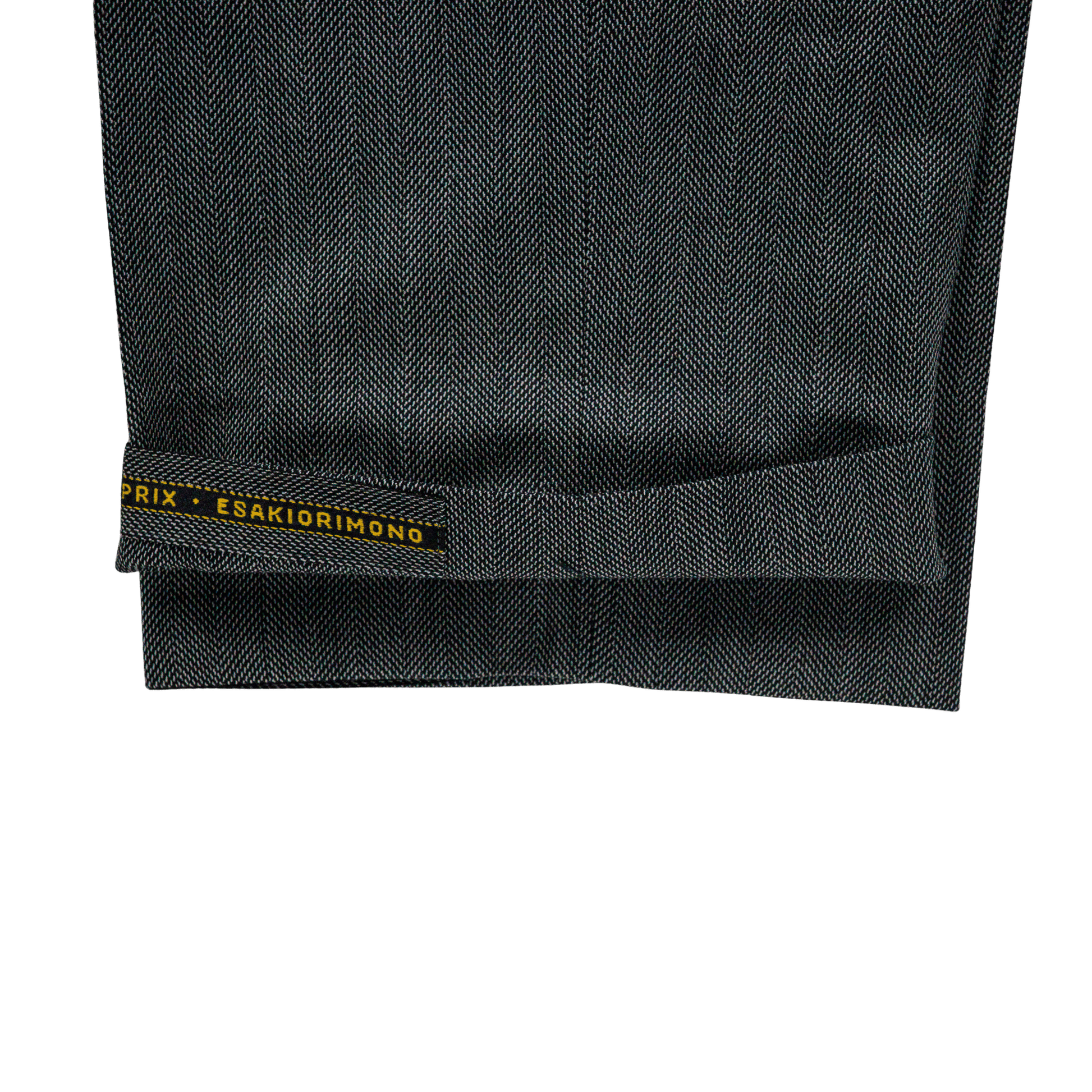 国内のテーラーや縫製工場などで使われることのなかった生地を引き取り、一本のスラックスとして形にしています。