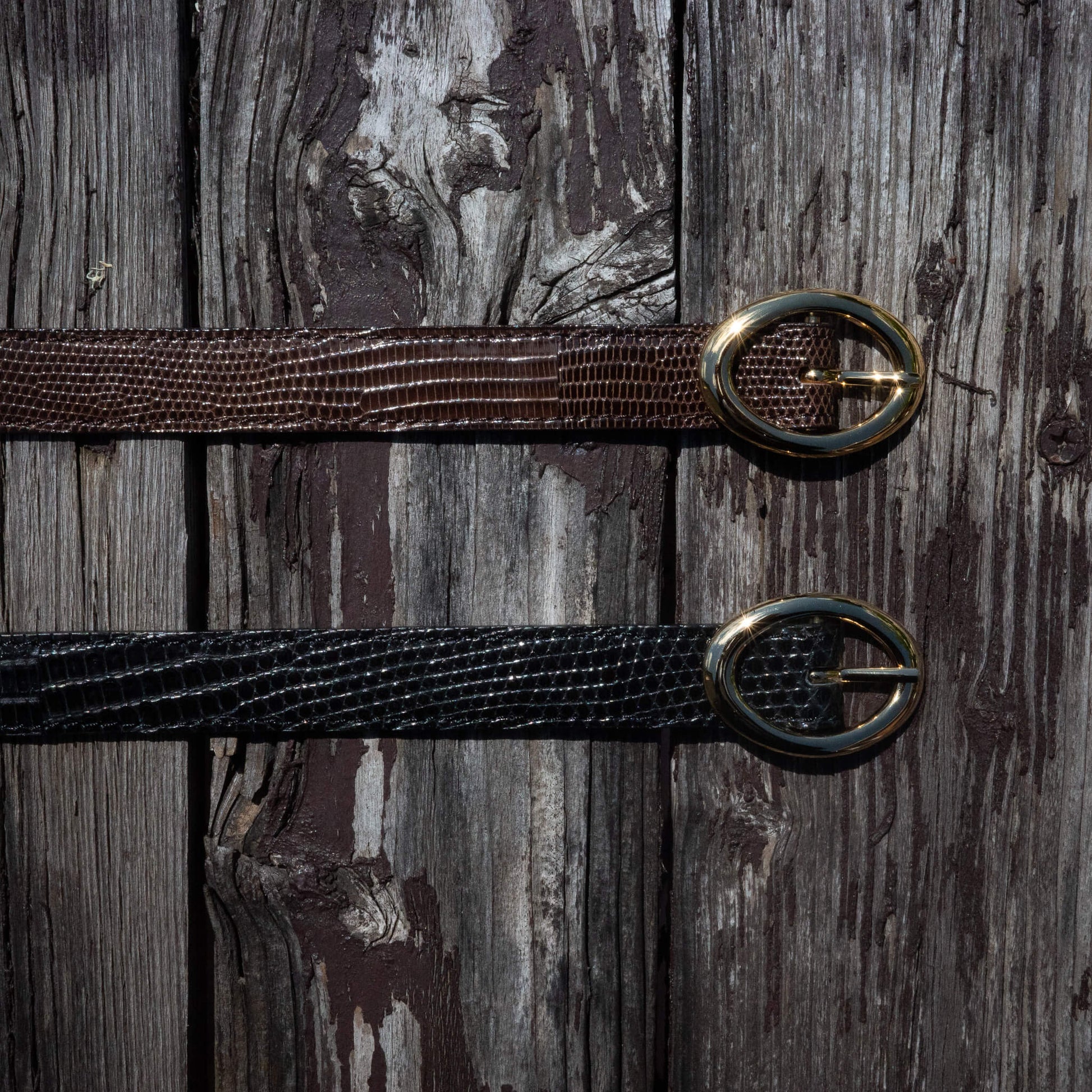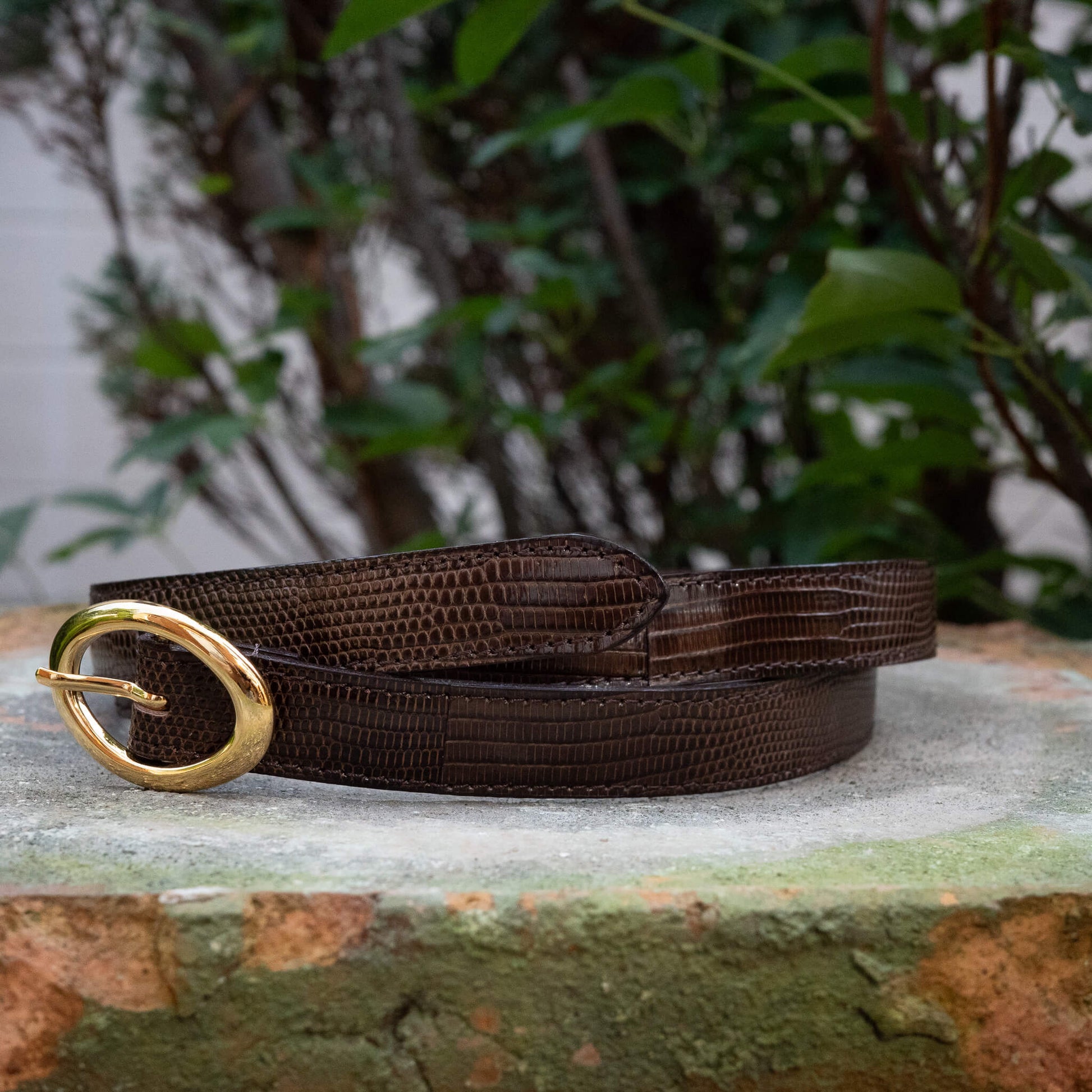 リザードレザーを使用した、ベルト幅22mmの細ベルト。