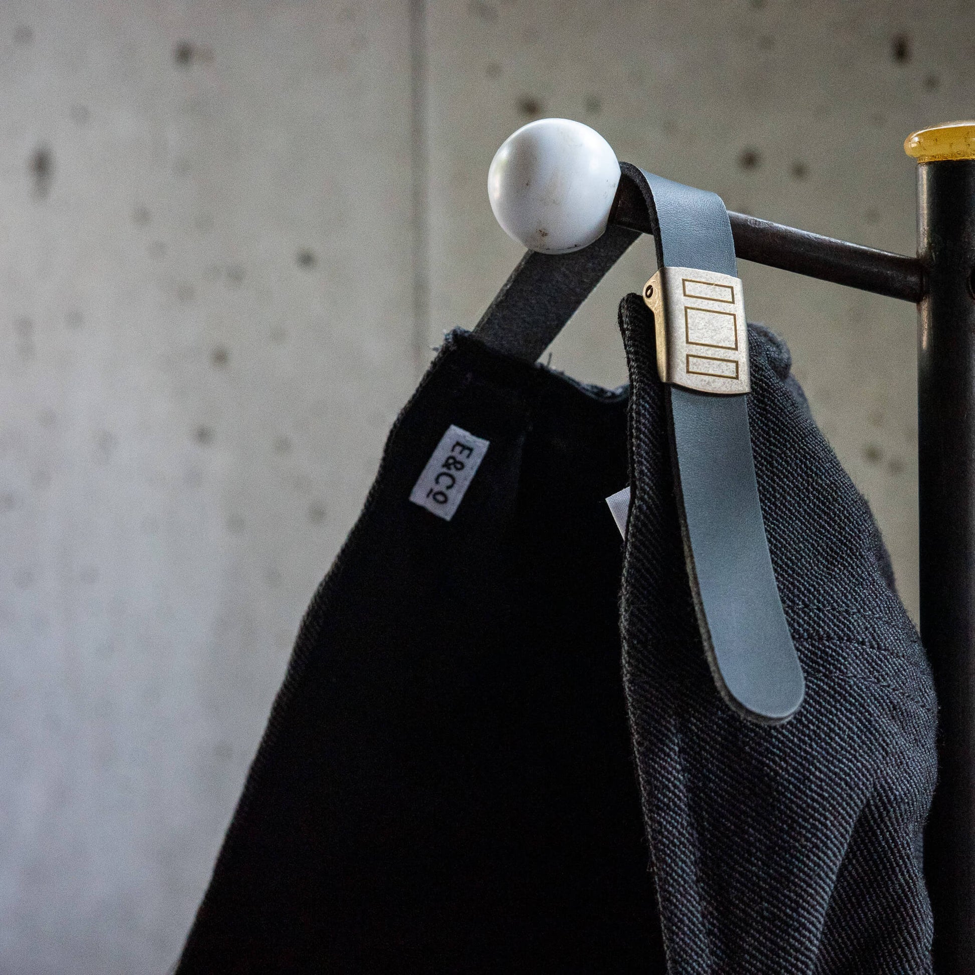 背面のレザーベルトによりサイズ調節も可能。バックルパーツにはブランドのロゴマークが刻印されています。