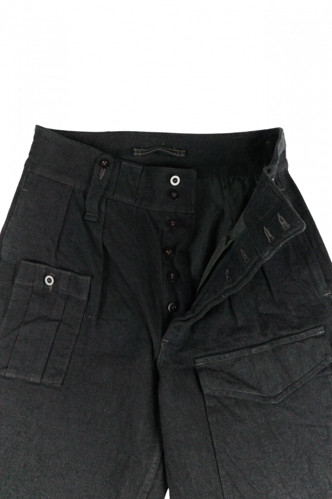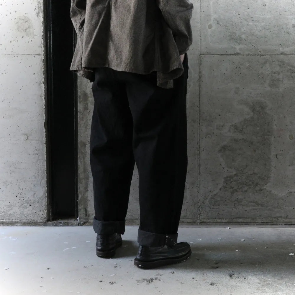 そのモデルに、デニム素材にも定評のあるNigel Cabournが新たに製作したブラックデニムを採用。洗練された印象のブラックデニムは、デザイン性の高いバトルドレスパンツとも相性抜群です。