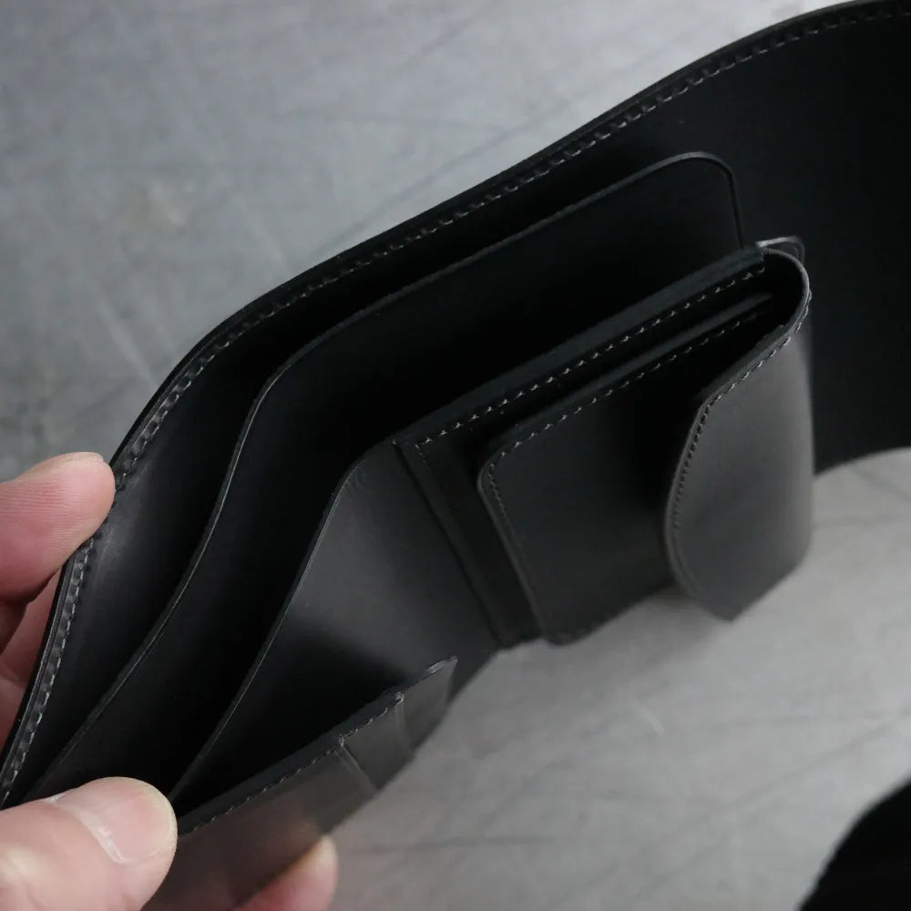 外装のメイン素材にイタリア製のHorse Vachetta、内装にBaby Calfを採用した、POST PRODUCTIONのFLAP WALLET