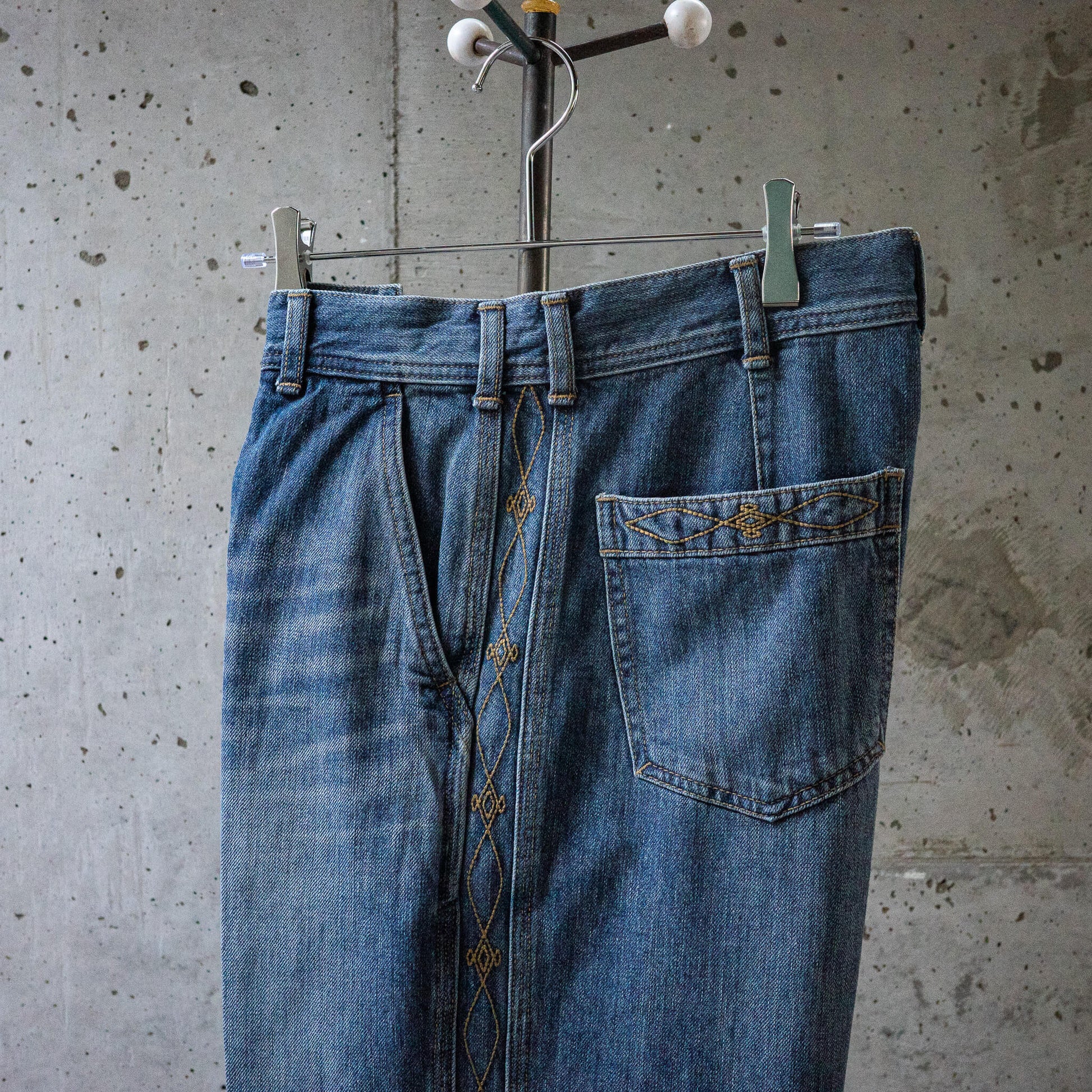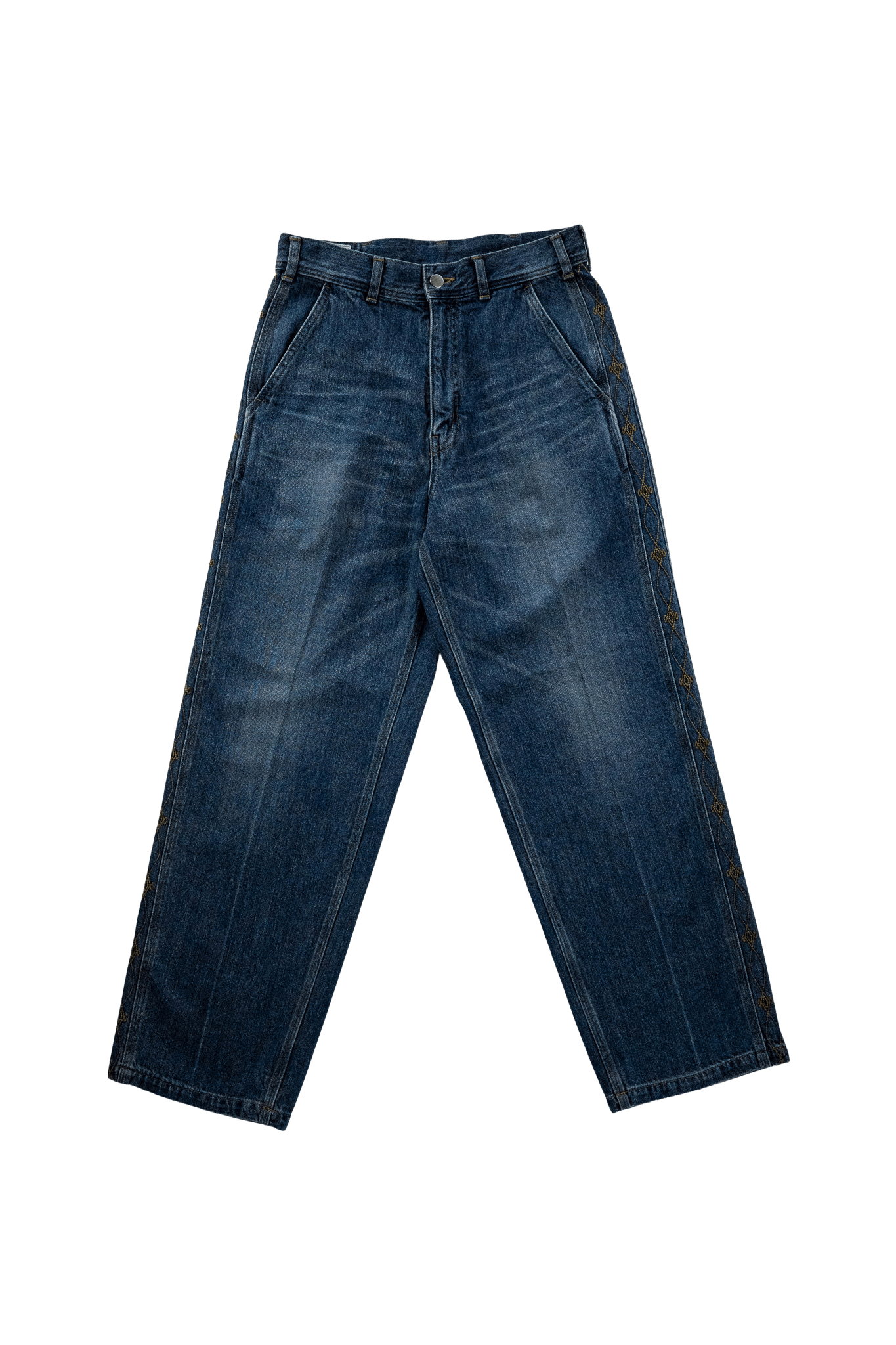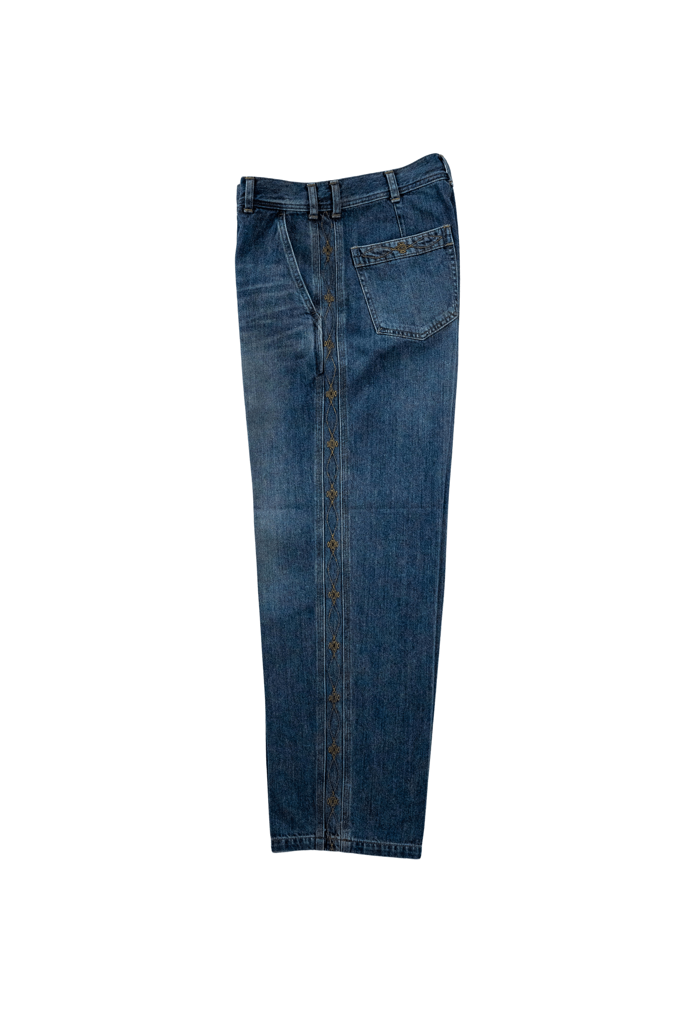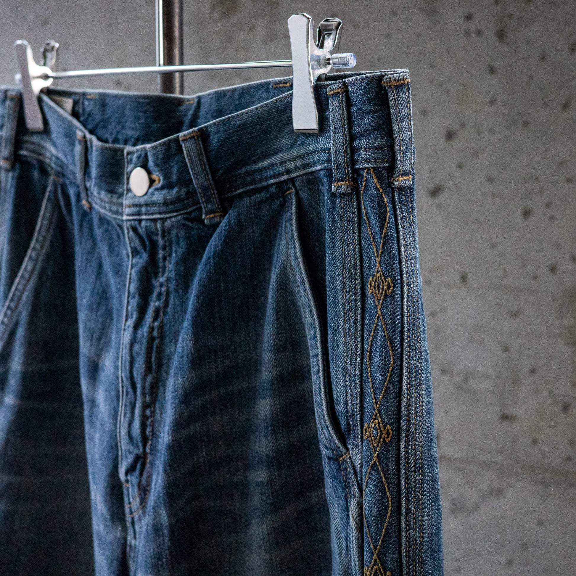 ウォッシュ加工で表現されたヴィンテージ感のあるインディゴブルーと、美しい刺繍とのコントラスト。