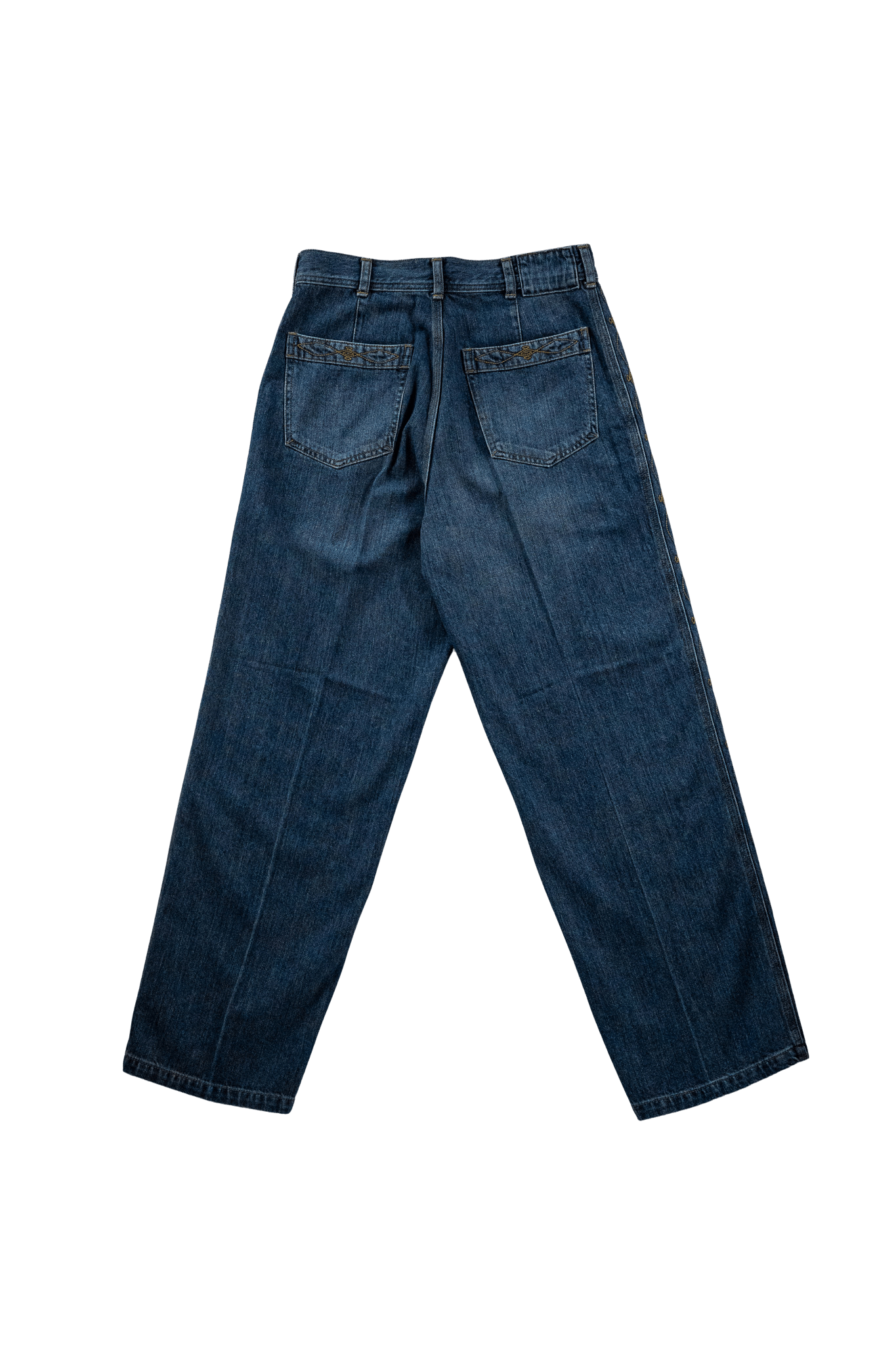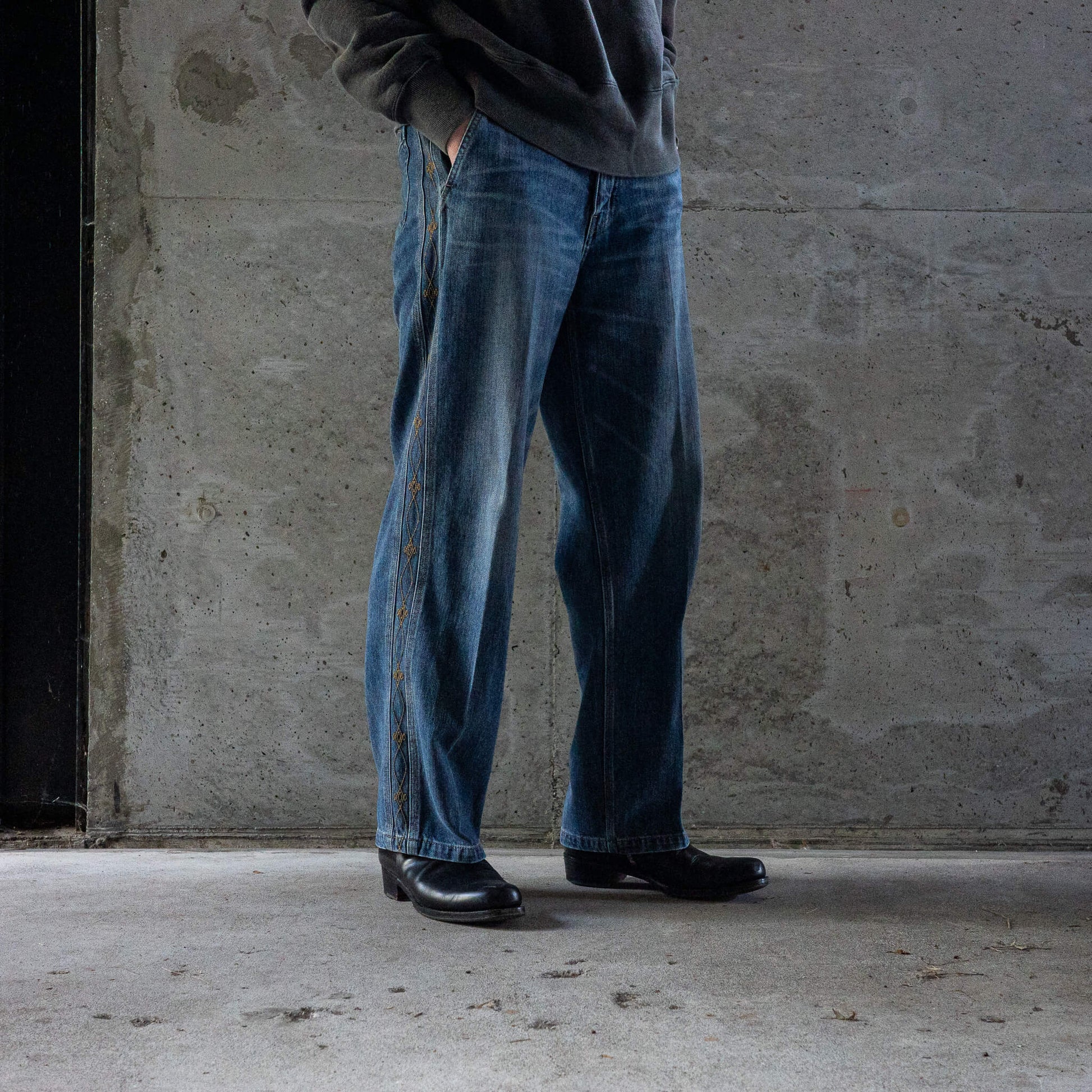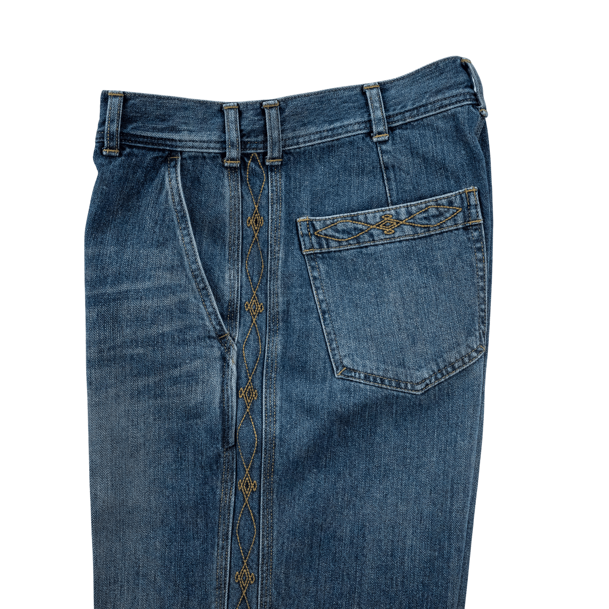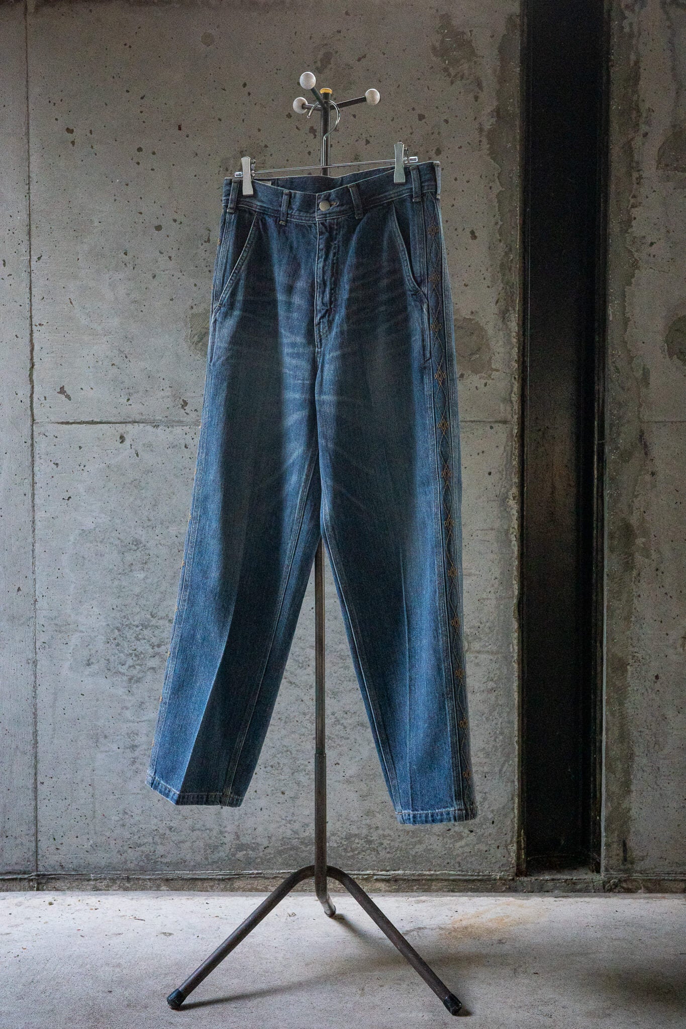 ウォッシュ加工で表現されたヴィンテージ感のあるインディゴブルーと、美しい刺繍とのコントラスト。