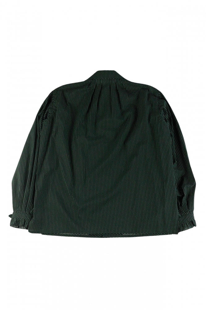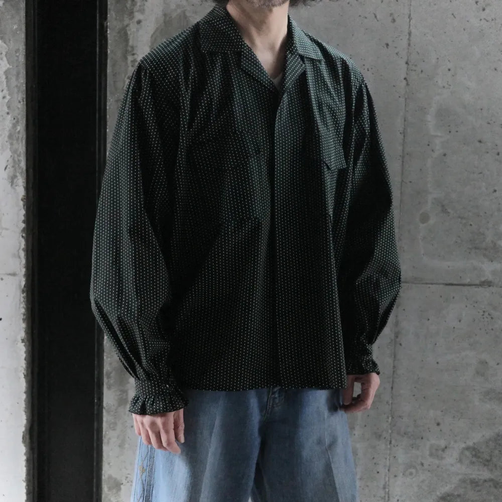 オープンカラー、スモック、フラップポケット、フリルと、様々なディテールをミックスさせたSARTOのオープンカラーブラウス。