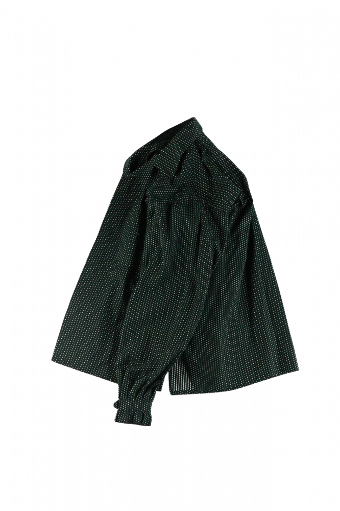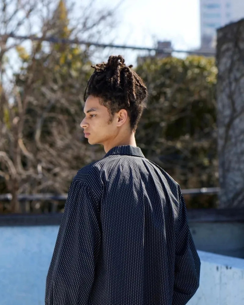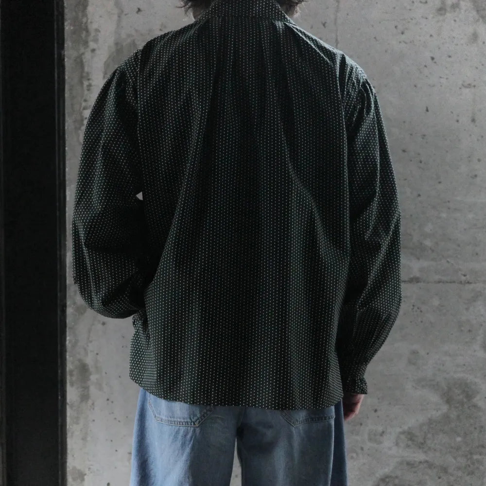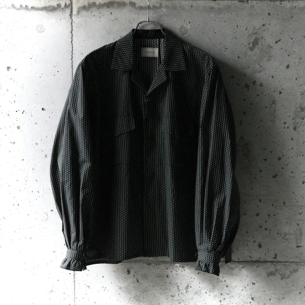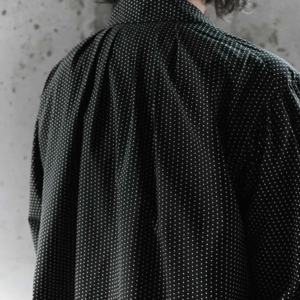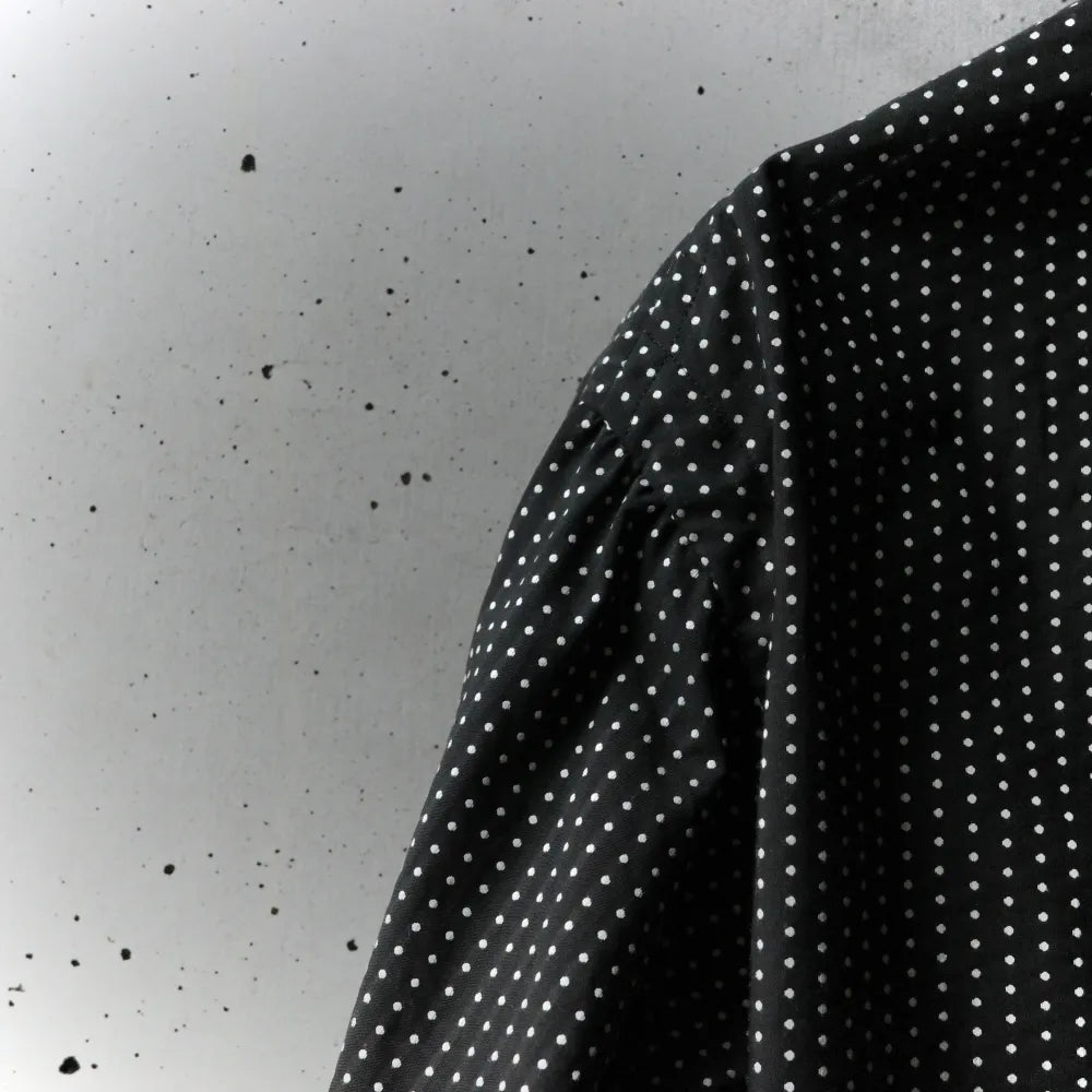 素材にはドビーコットンを使用。さらっとした生地感で、季節的にも最適なファブリック。水玉柄は織りによって表現されています。