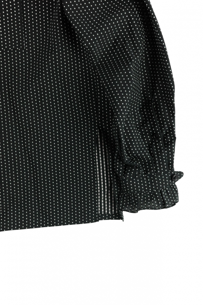 裾はスクウェアカット、サイドには深いスリット入り。ふんわりとして甘く感じるデザインでありながら、ブラック×ホワイトの小ぶりなドット柄を使用することで、ピリッと引き締まった印象に。