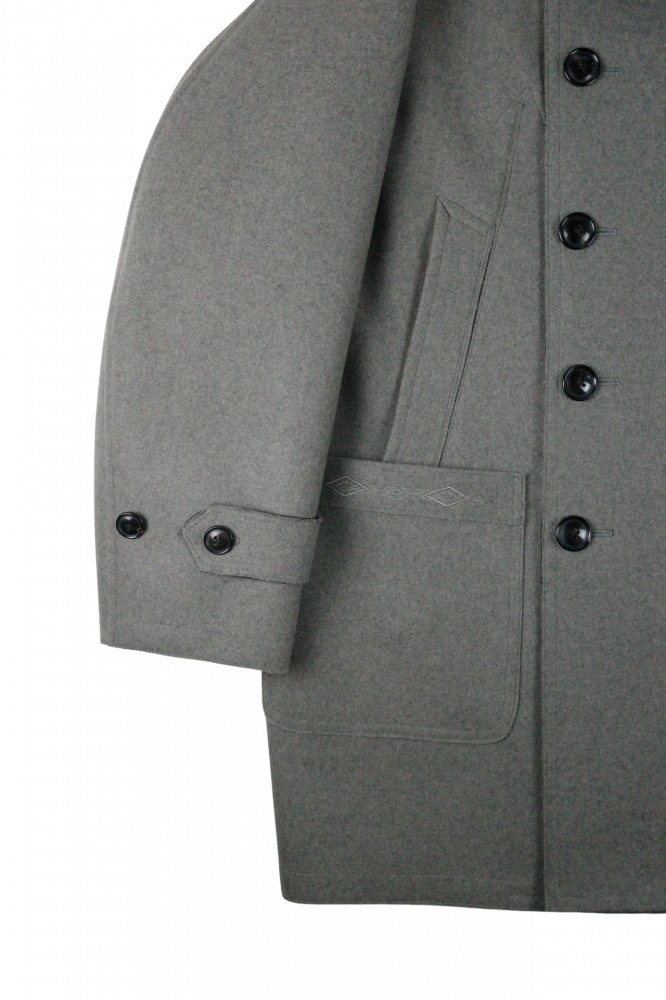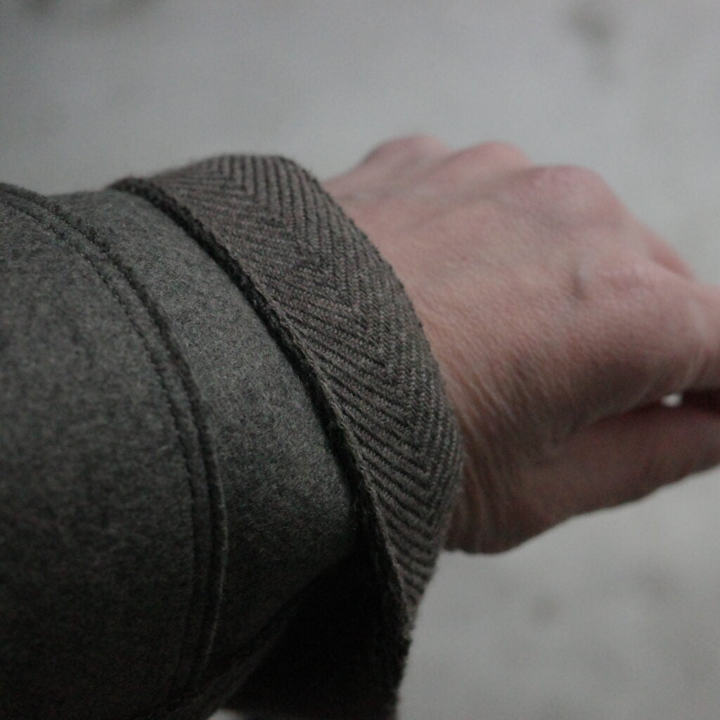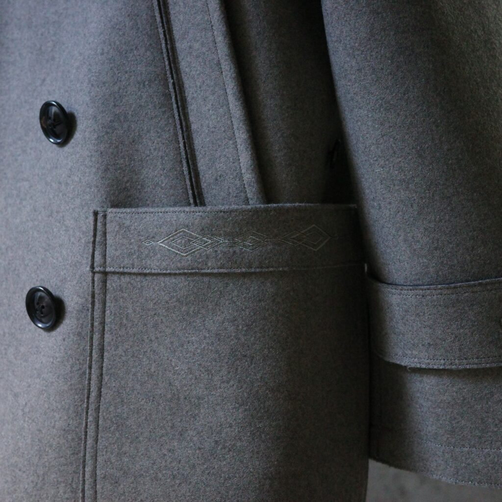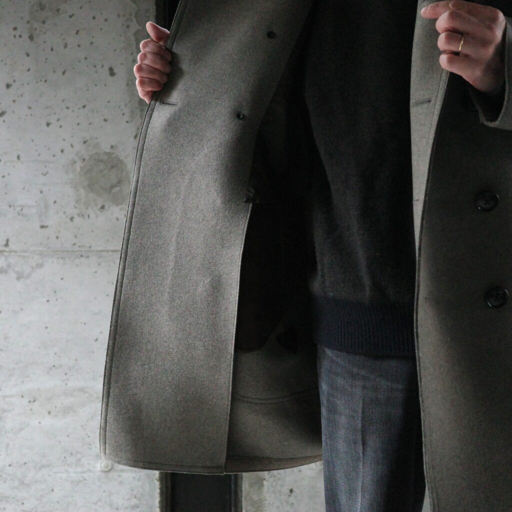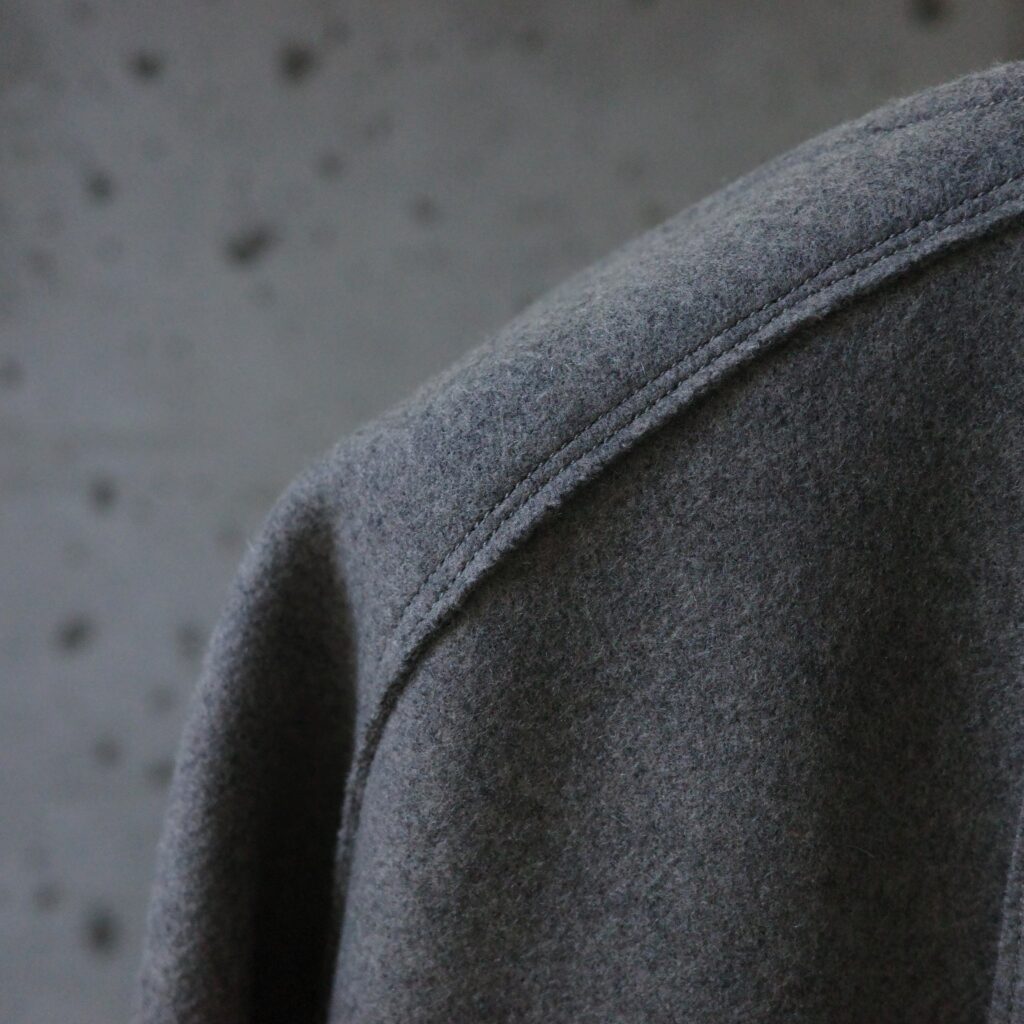 ベースにはカシミヤ混のヘビーウールカシミヤメルトンを使用。その名の通り重厚感のあるメルトン生地なのですが、20%カシミヤを配合しているため非常に滑らかな肌触り。生地自体も柔らかく心地の良いフィッテイングです。