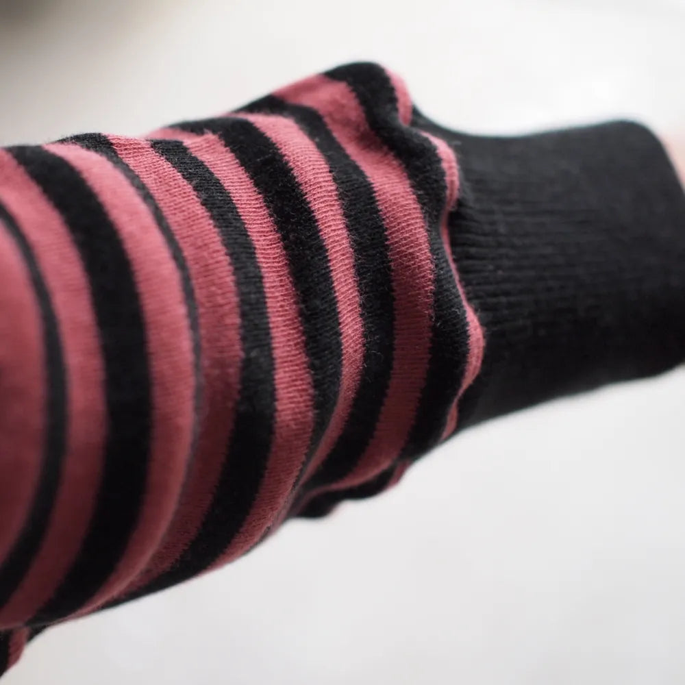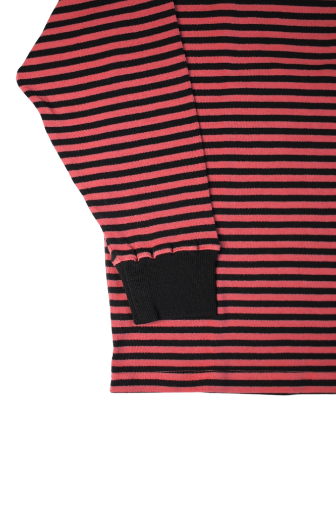 カラーは製品染め、赤というよりは濃いピンクのようなトーン。