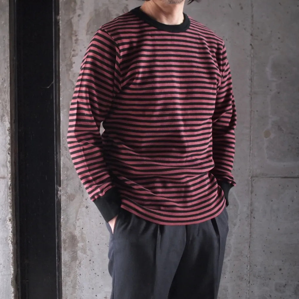 クルーネックの衿と袖口は、共糸を横付属で編んだリブを使用。ニットブランドが作る拘りが詰まったコットン100%のロンTは、インナーからトップスまで、通年着用できるアイテムとなっています。