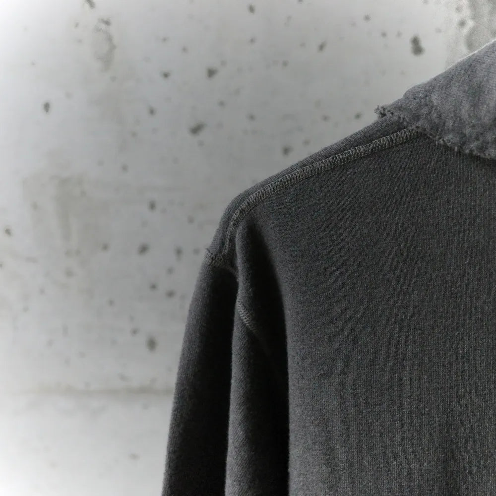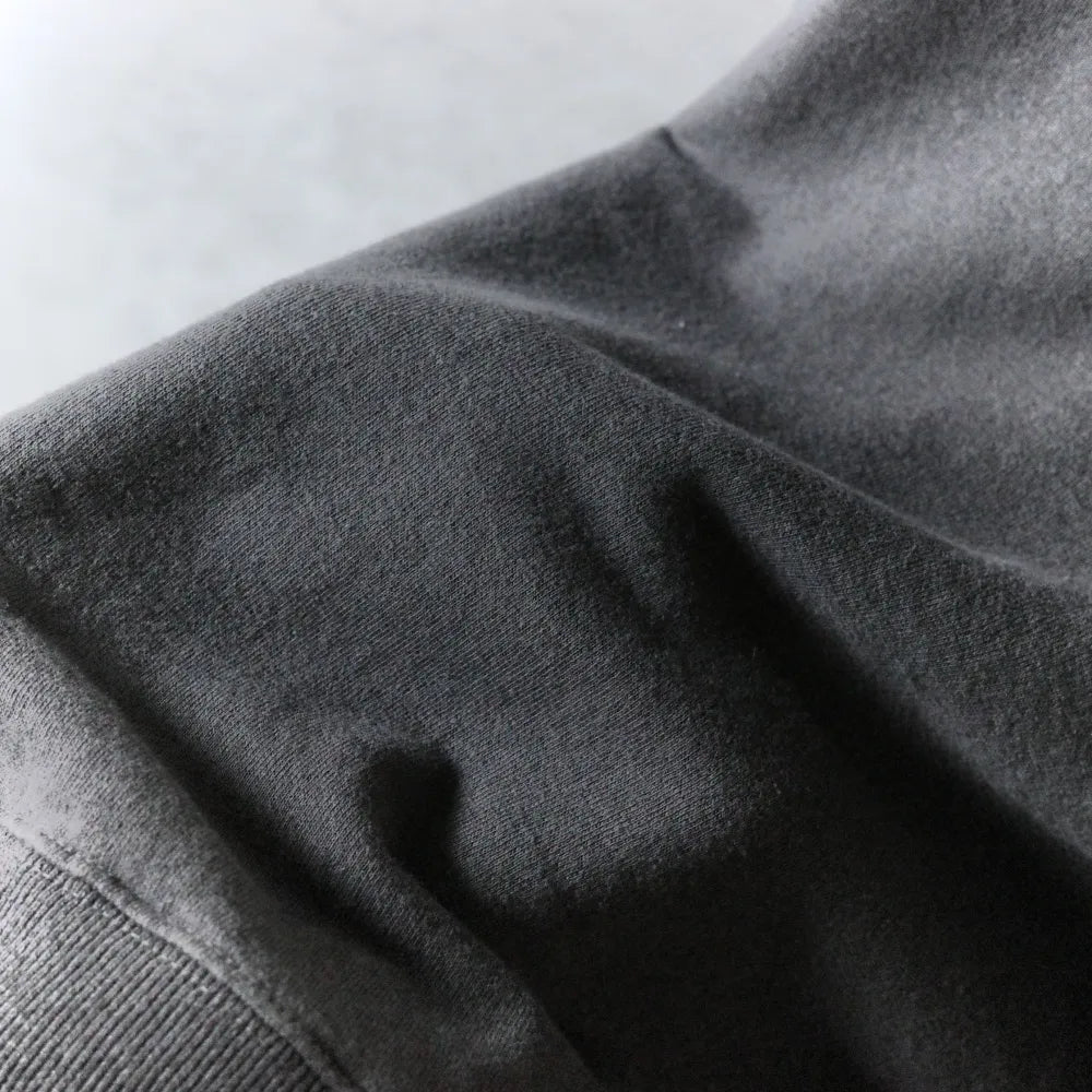 ブランドの狙い通り、触感、厚みを含め、素材感はまるでUSEDのスウェットそのもの。生地自体に派手さはないものの、加工ではなく、長年着古したようなクタクタ感を複雑な工程で作り出す点に、Slopslowというブランドの凄みを感じます。