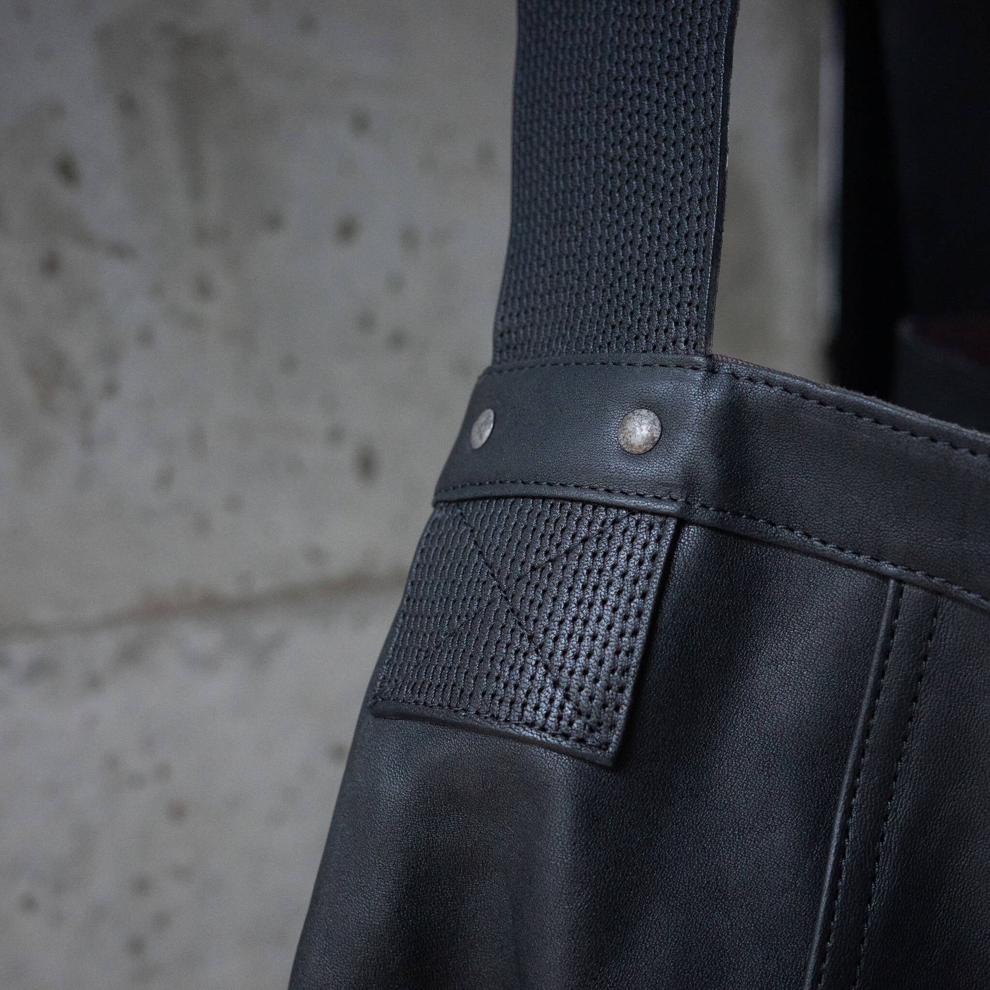 マテリアルをレザーに置き換えてもなお、このモデルを象徴するショルダーベルトの緻密なステッチを忠実に再現。