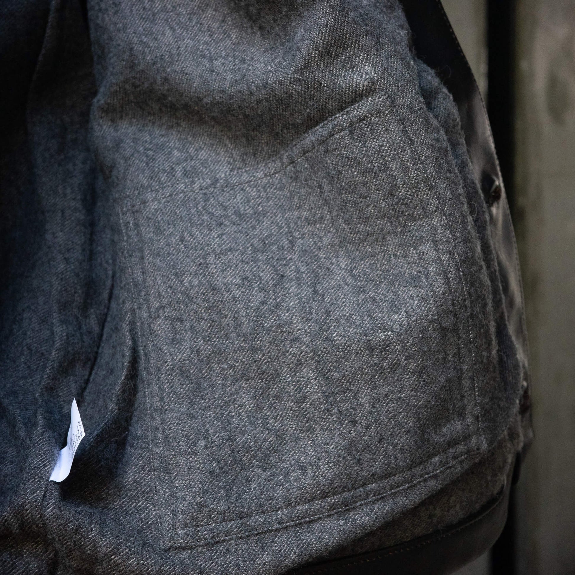 ワーカージャケットのため、装飾というデザイン性が全く存在しない、言わば道具に近いこの衣類を、当時の仕様を継承しながら素材感を考慮し、脇下の溜まりを改善するため肩傾斜を付けて再構築。