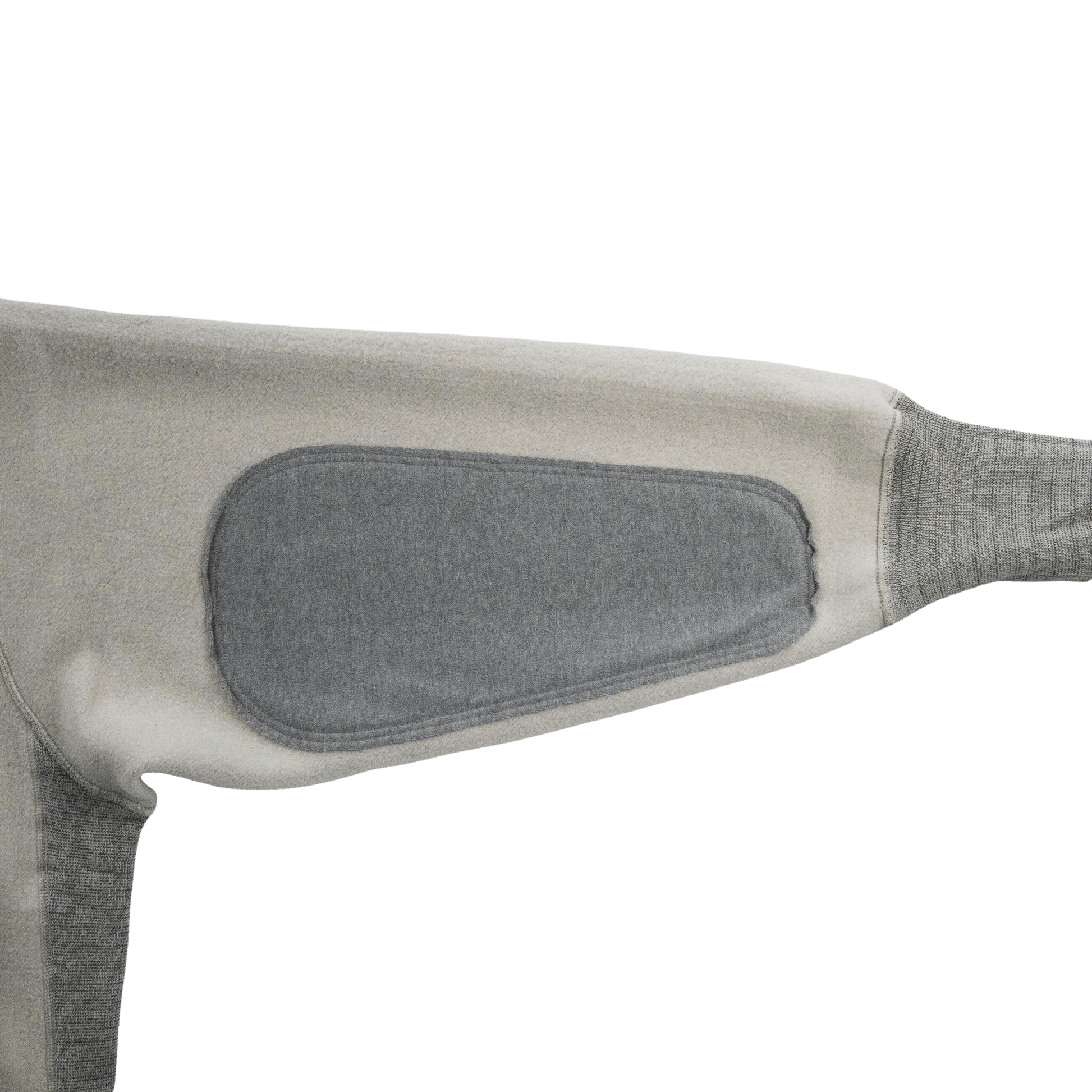 アームの分量に比例するように配されたビッグサイズのエルボーパッチが、デザインのアクセントとなっています。
