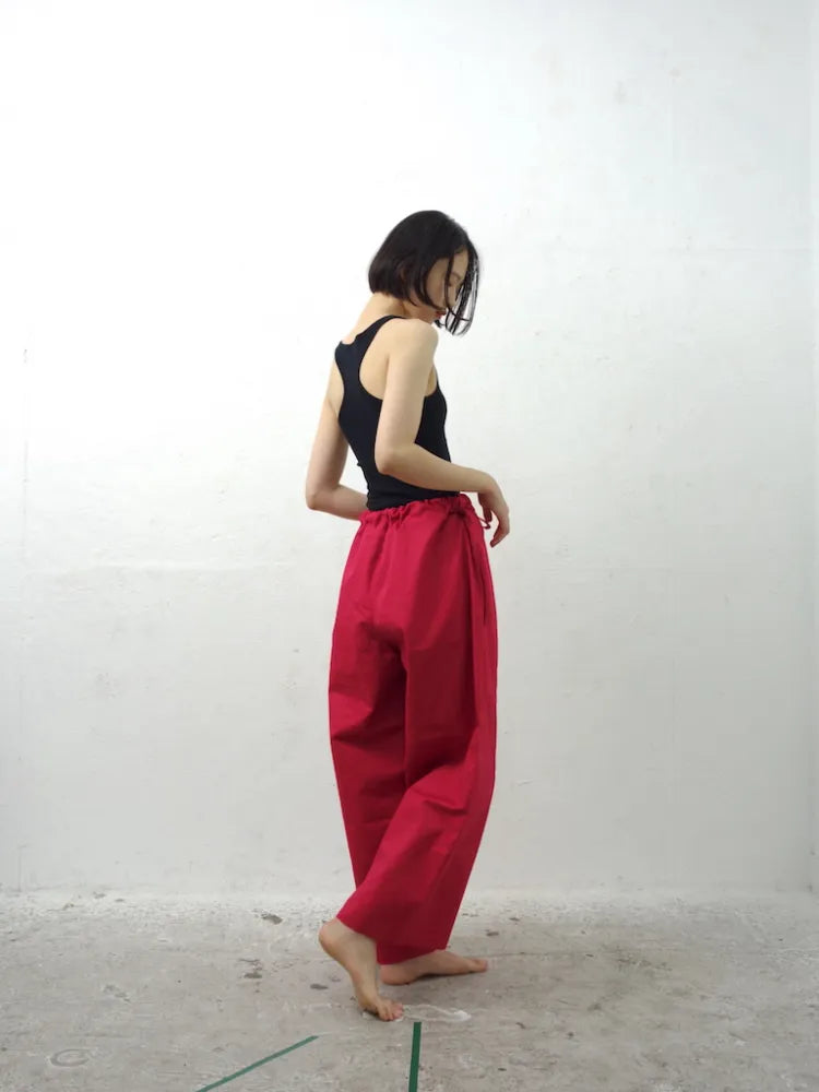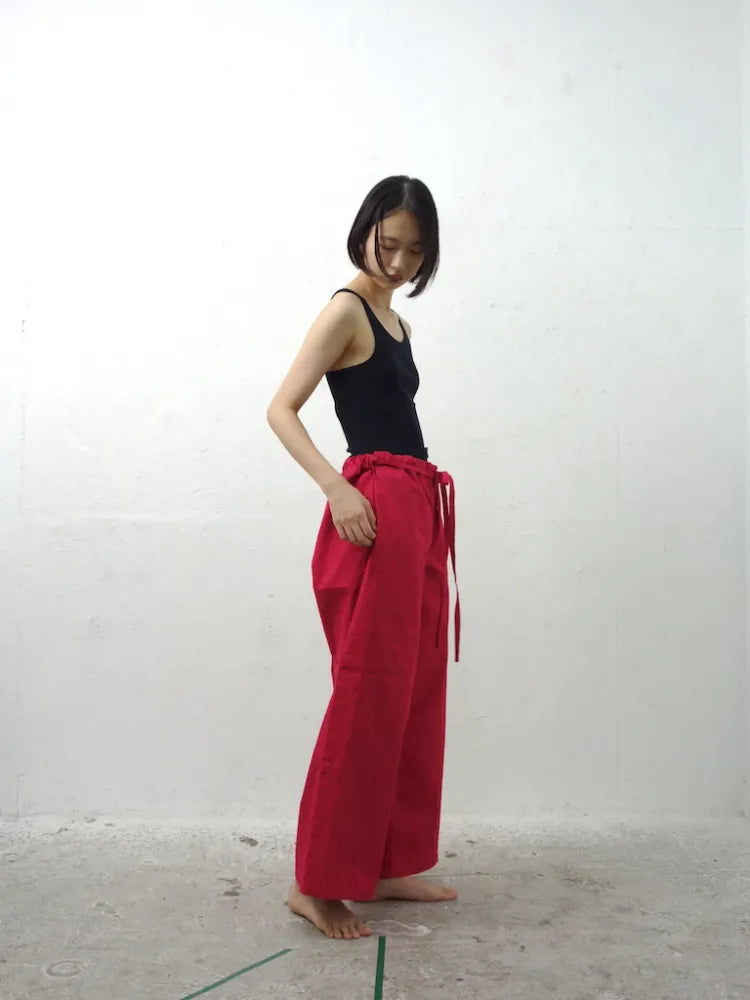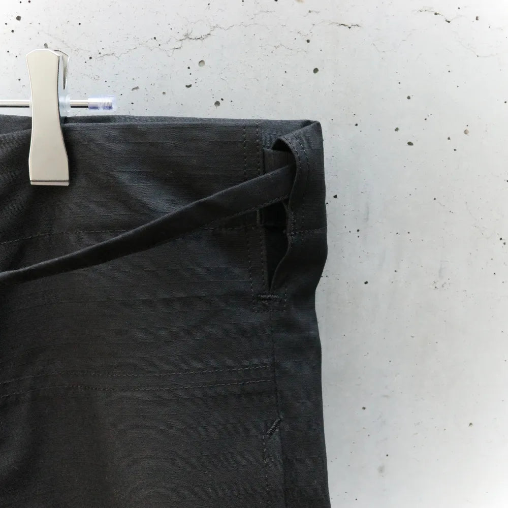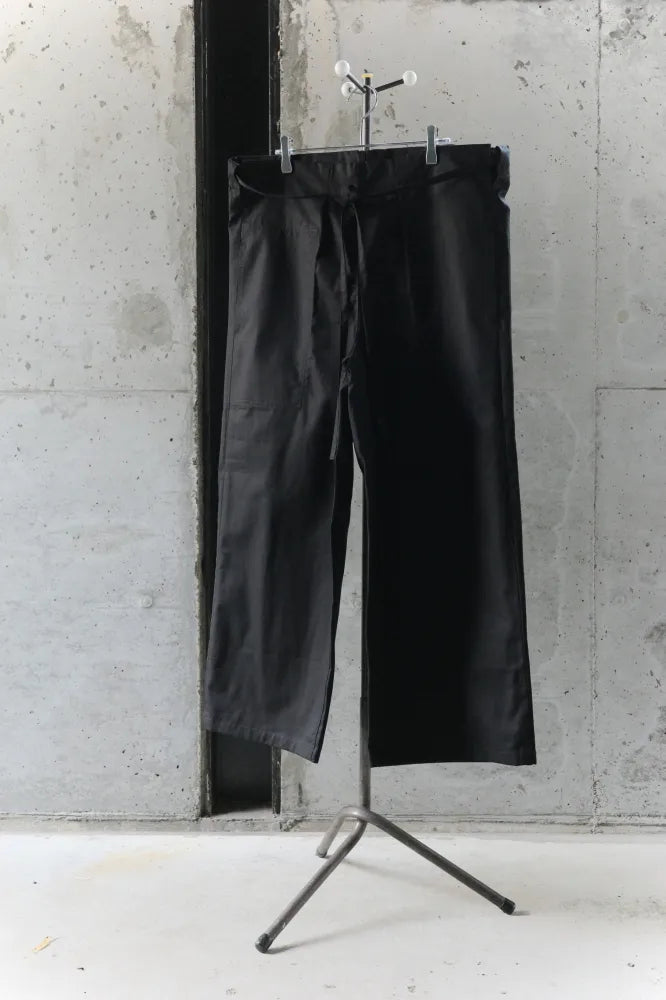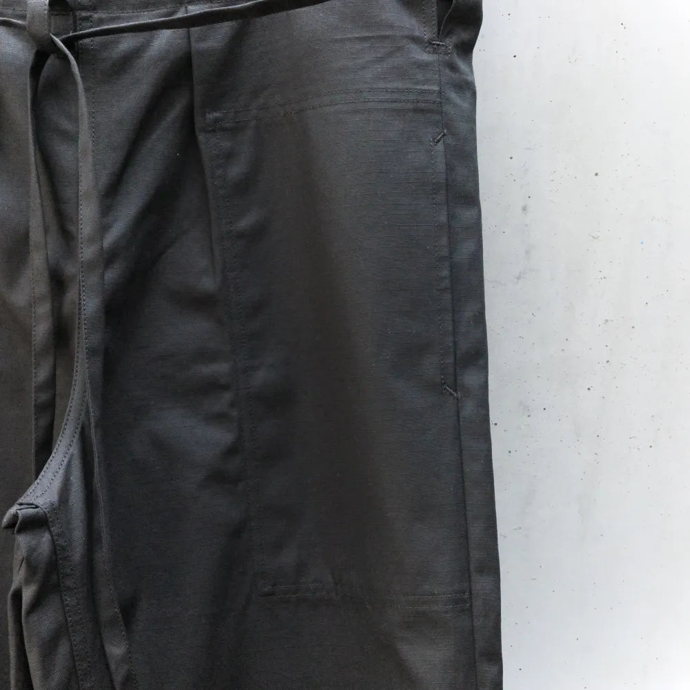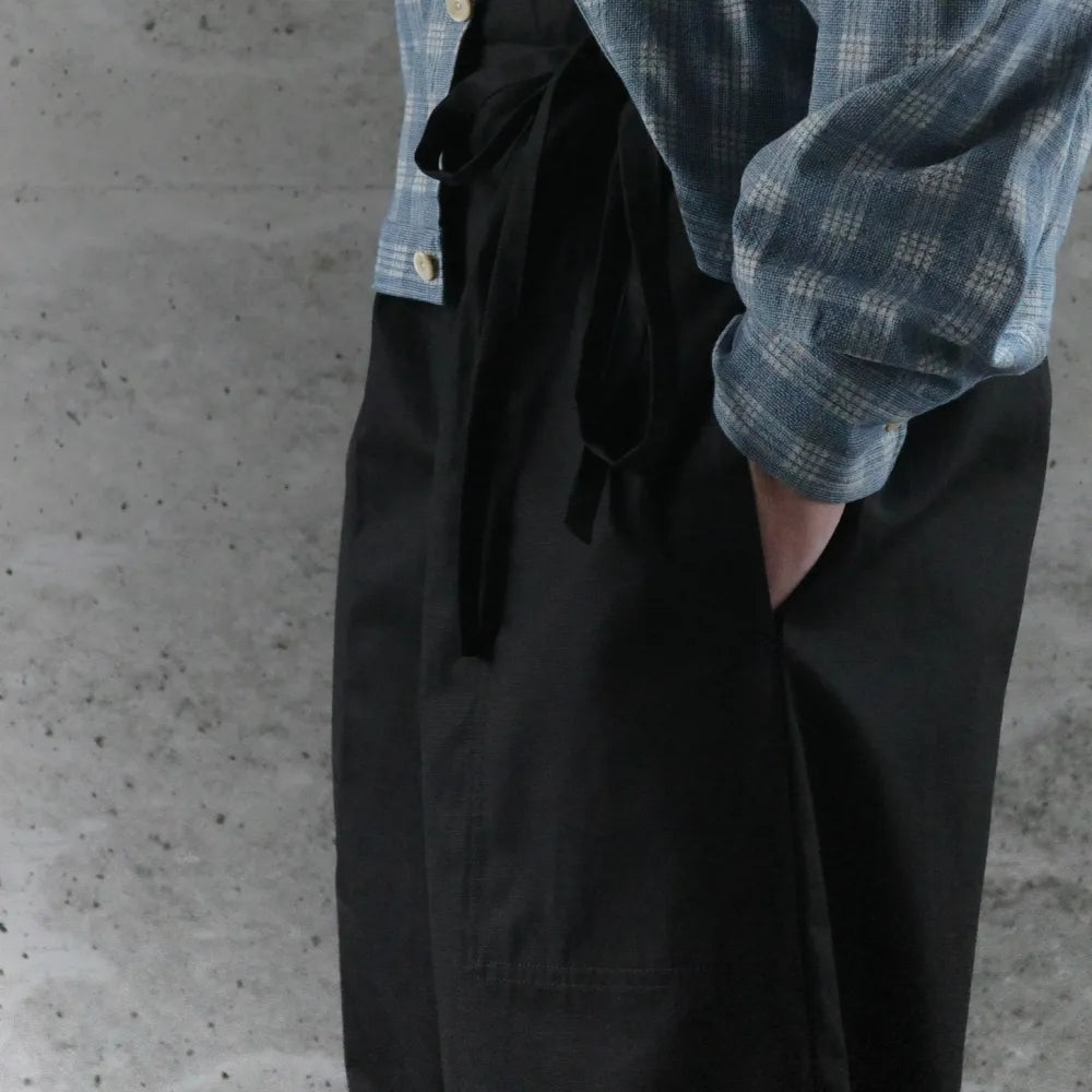 道着をモチーフとした過去モデル「カラテパンツ」の流れを汲む今作は、ミニマルなデザインでありながら、細部に渡りテクニカルな作りとなっています。