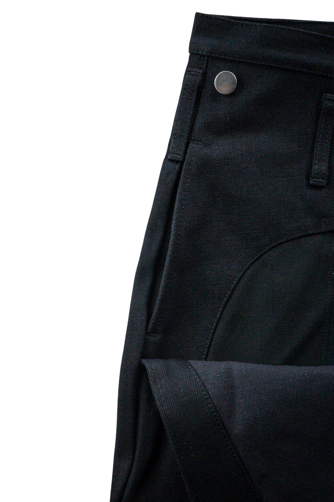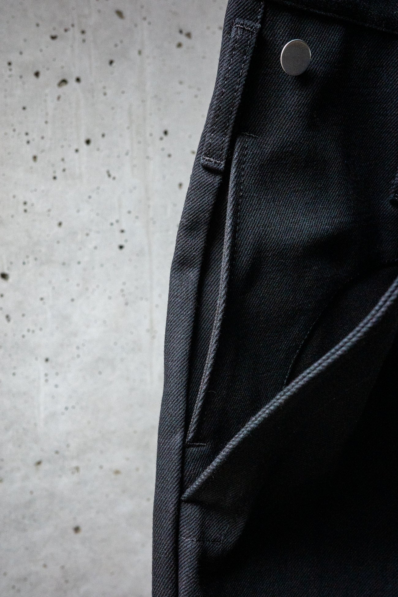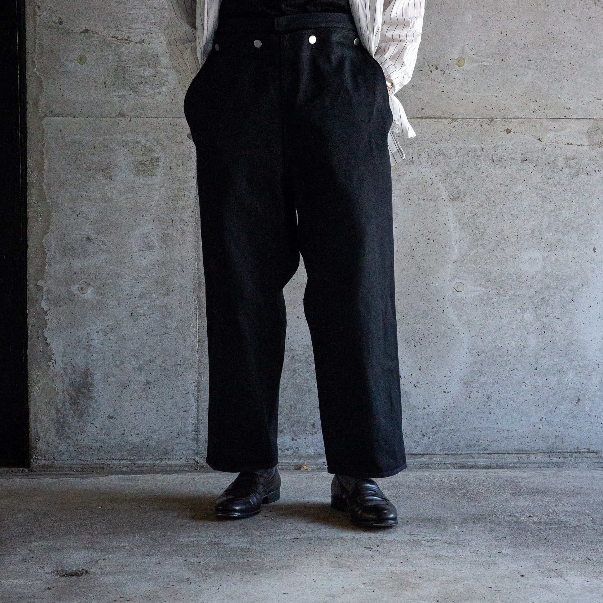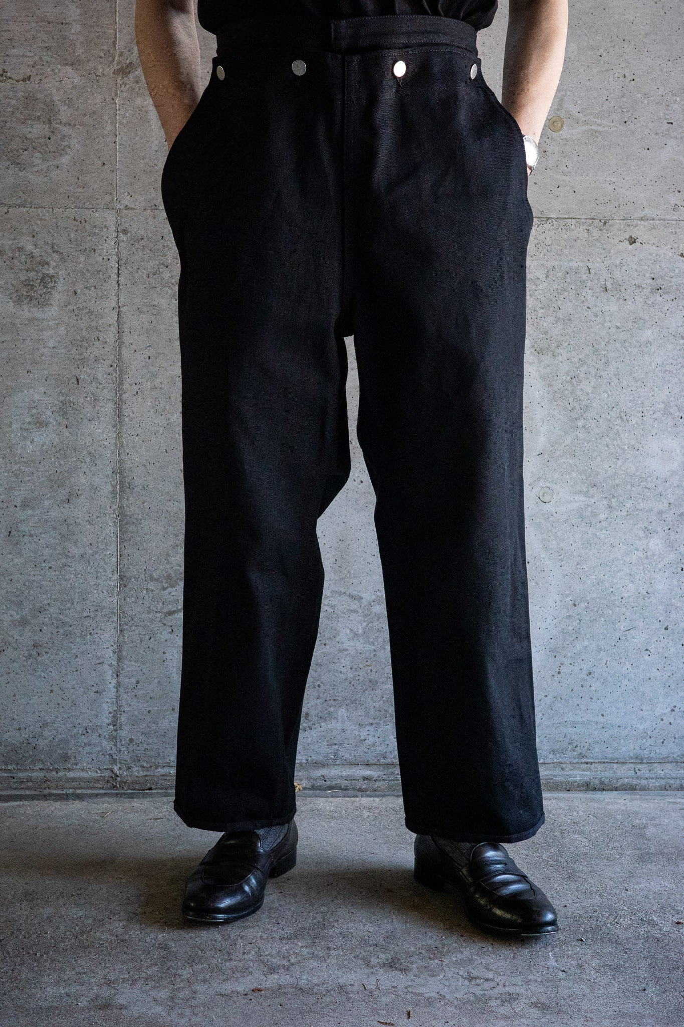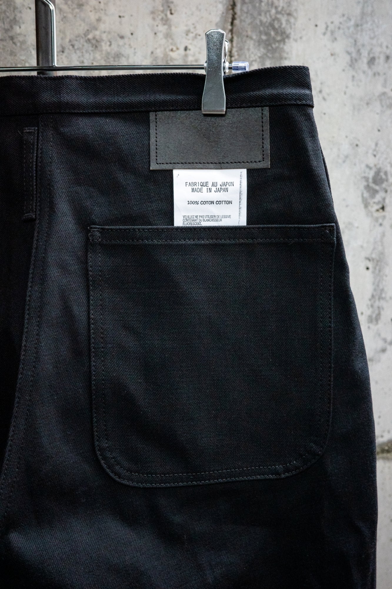 ブラック×ブラックの色合いは、穿き込むことで徐々にグレイッシュに褪せ、雰囲気のある表情へと育っていきます。