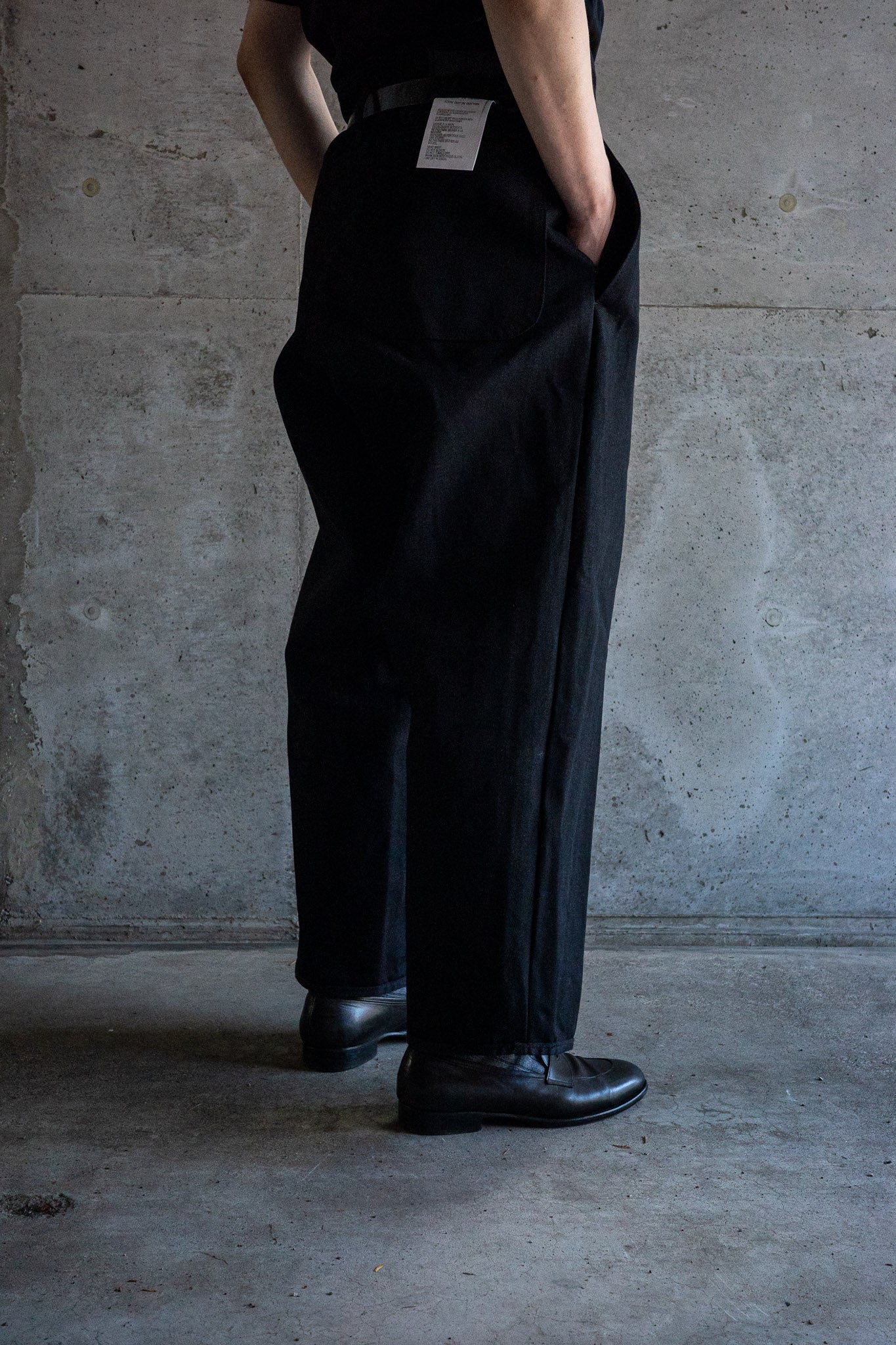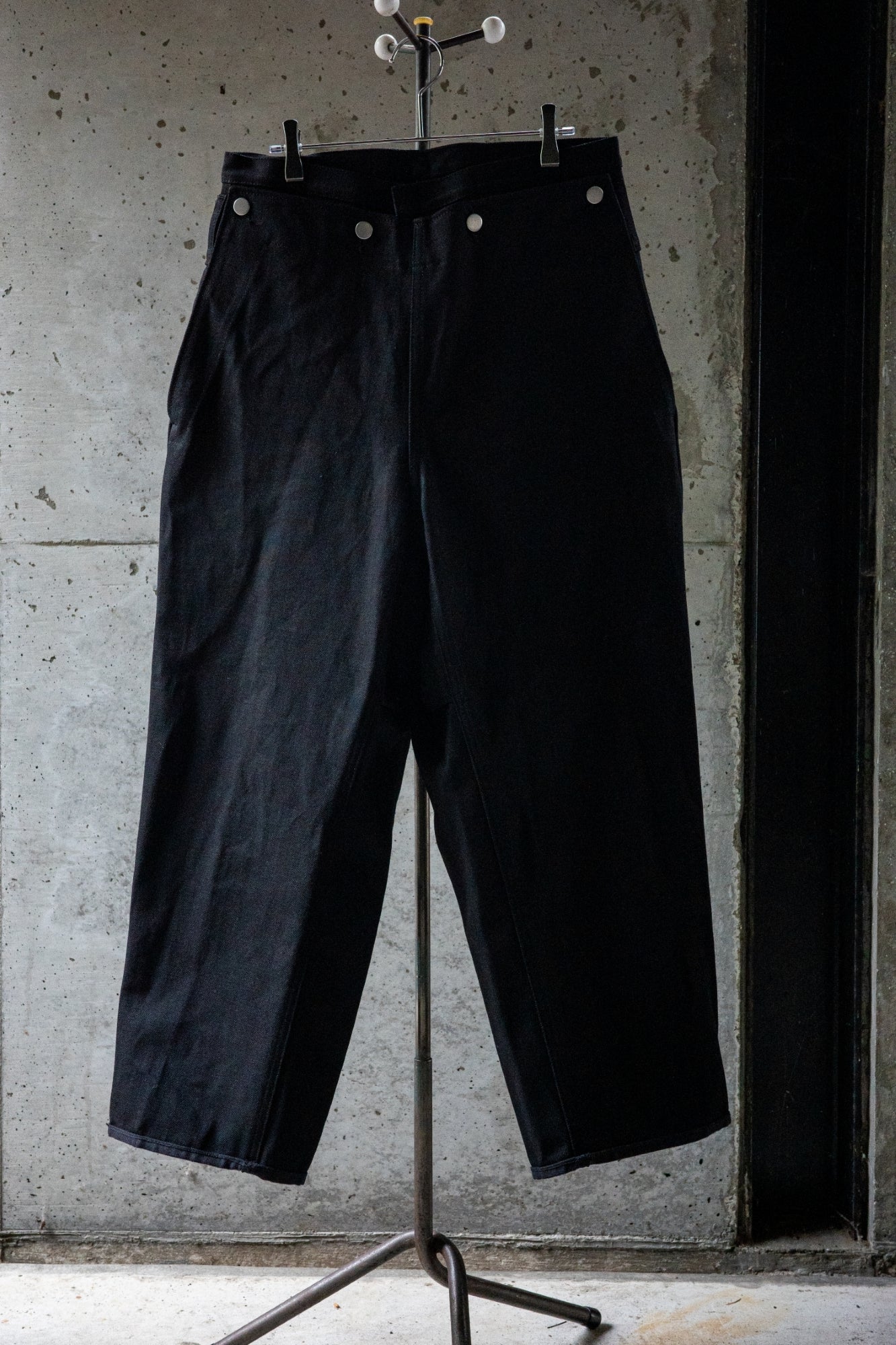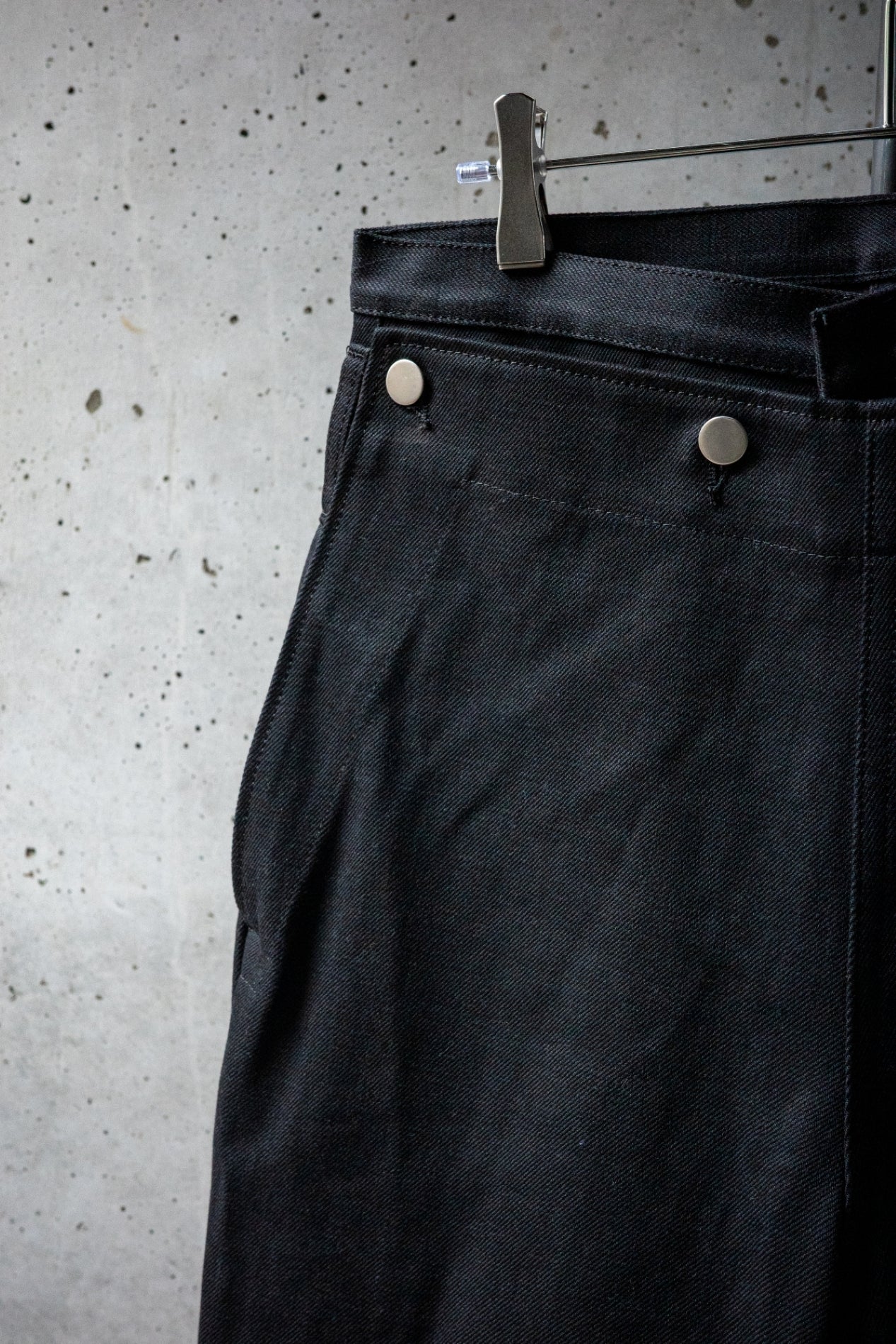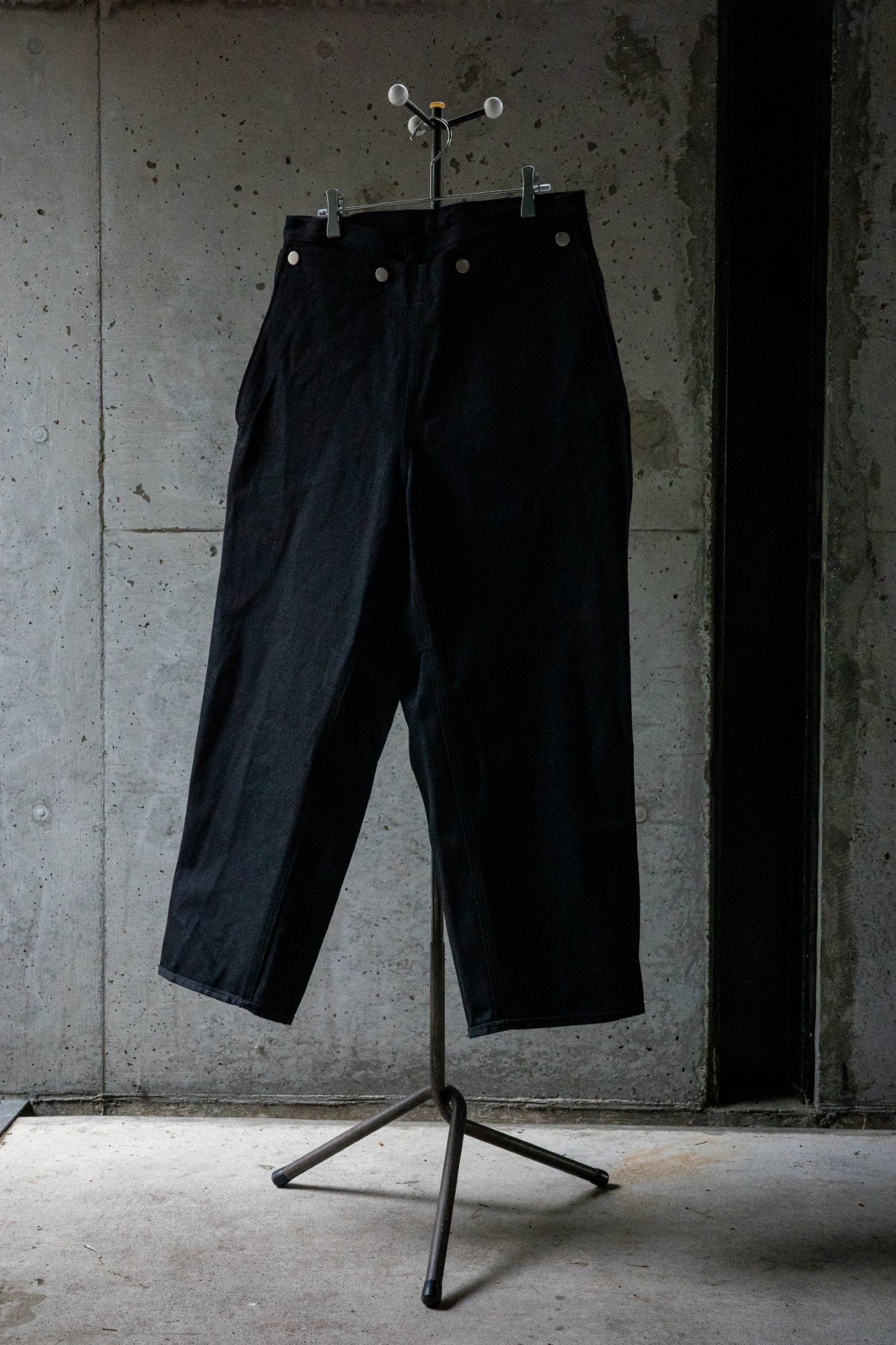ブラック×ブラックの色合いは、穿き込むことで徐々にグレイッシュに褪せ、雰囲気のある表情へと育っていきます。