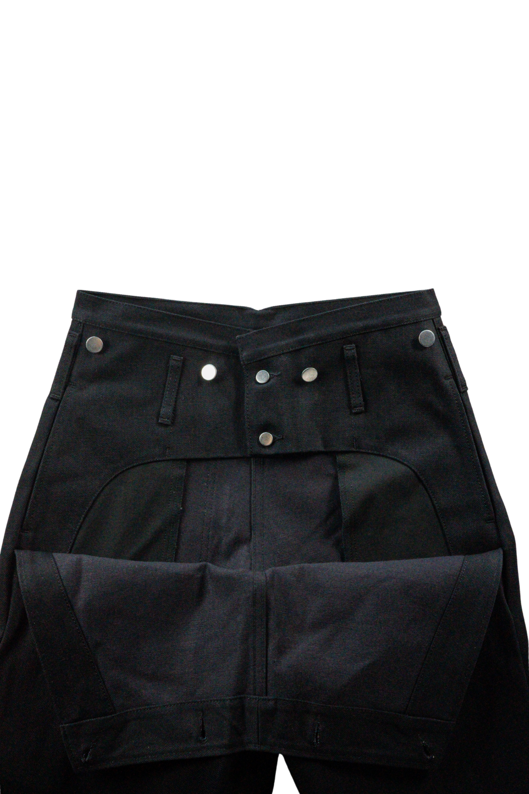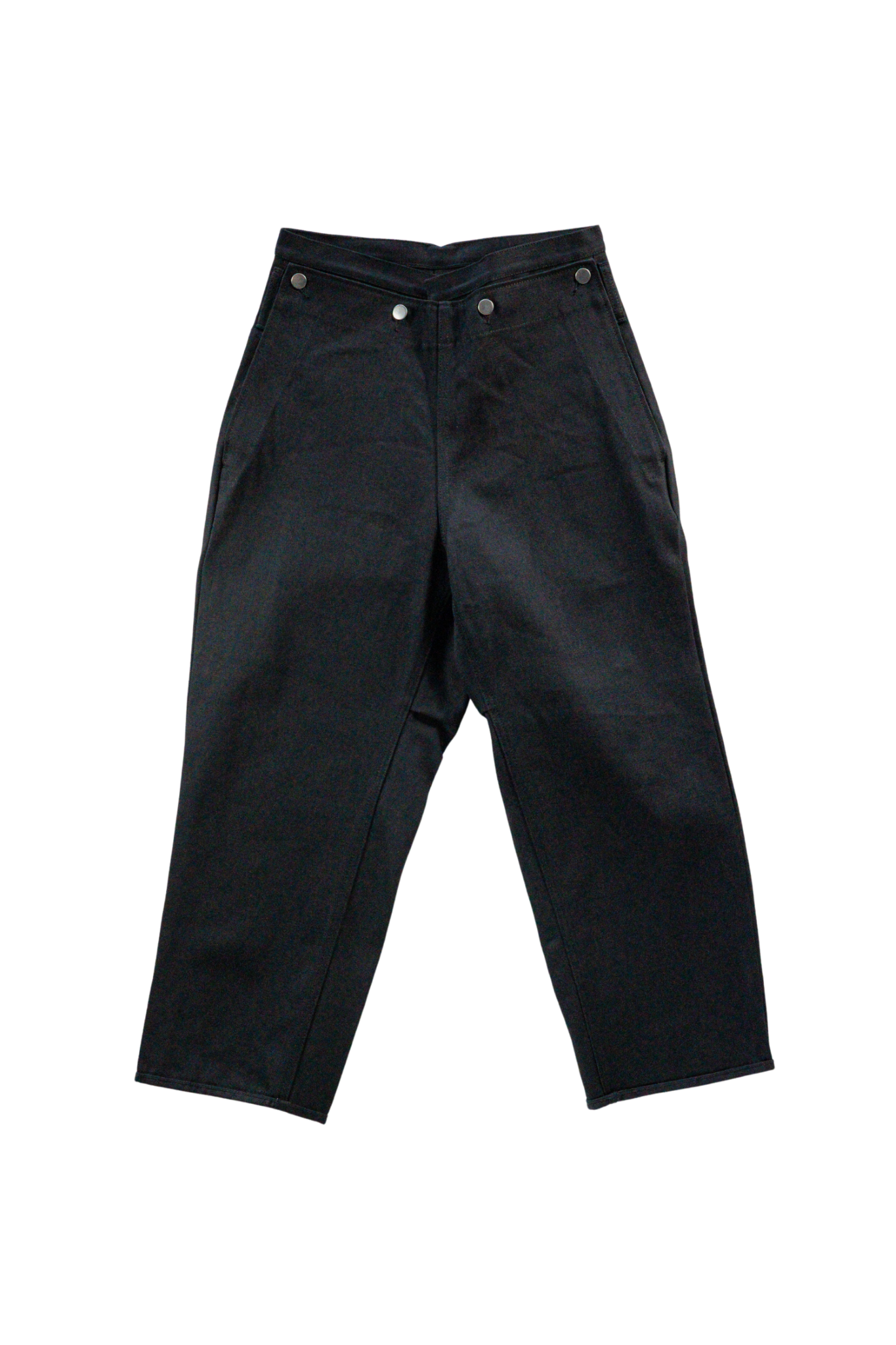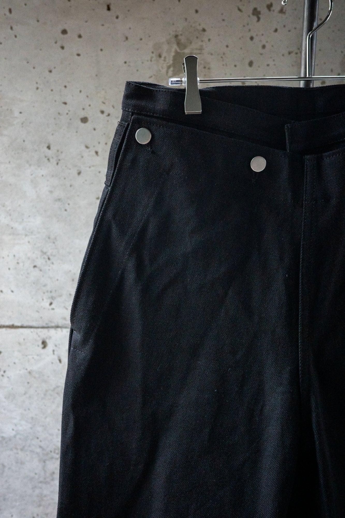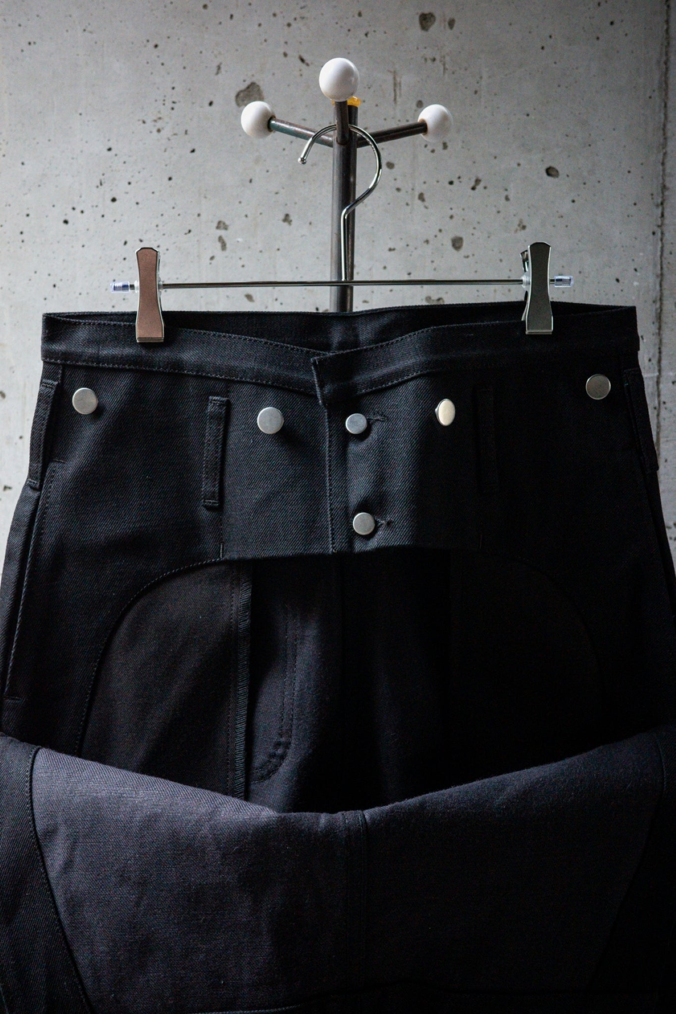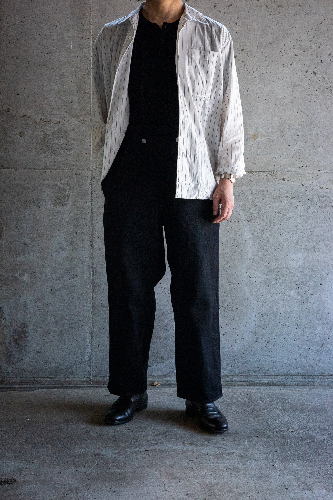 ブラック×ブラックの色合いは、穿き込むことで徐々にグレイッシュに褪せ、雰囲気のある表情へと育っていきます。