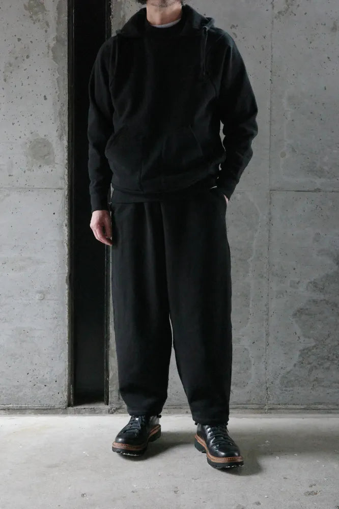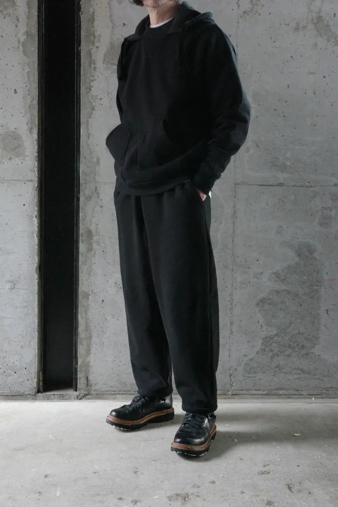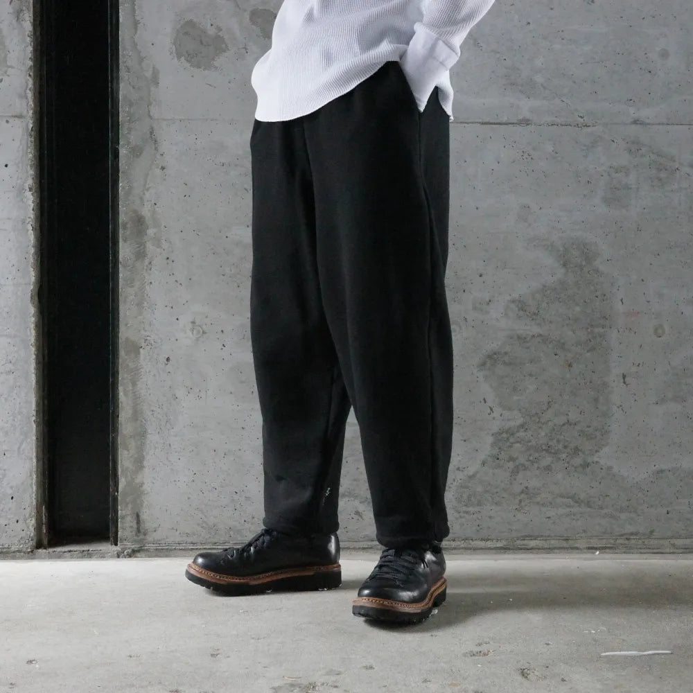 股上が非常に深く、テーパードシルエットにデザインされたスウェットスラックス。