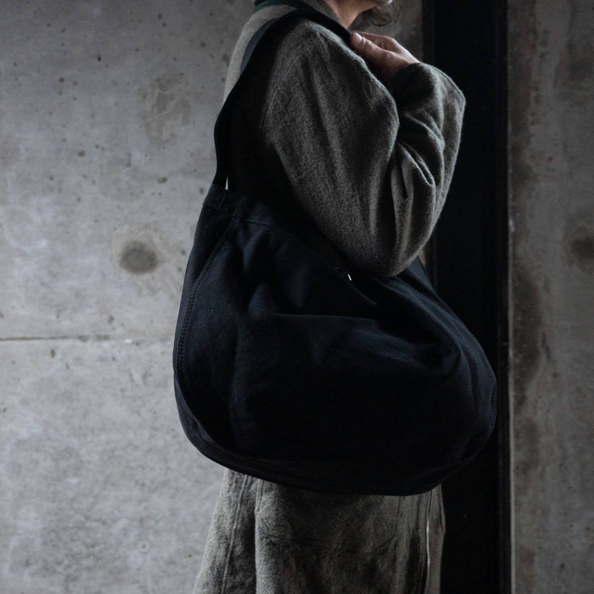 肩への負担を軽減する幅広のショルダーハンドルと、広いマチは当時の作りのまま、ショルダーハンドルの長さを短く調整し、ボディバッグのようにデザインしています。
