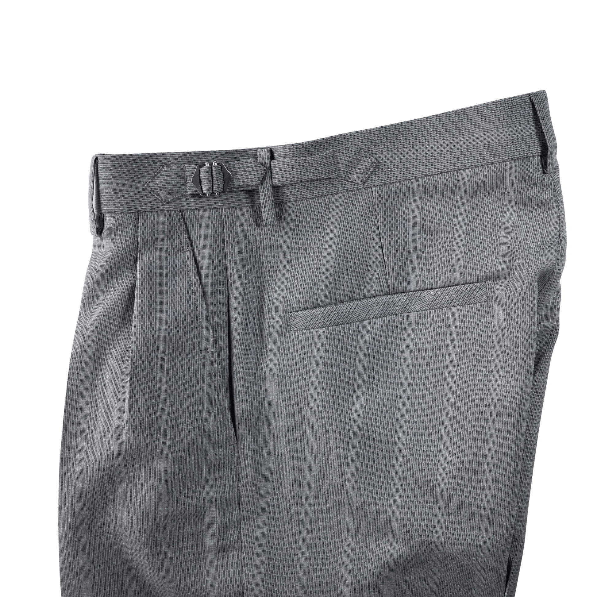 国内のテーラーや縫製工場などで使われることのなかった生地を引き取り、一本のスラックスとして形にしています。