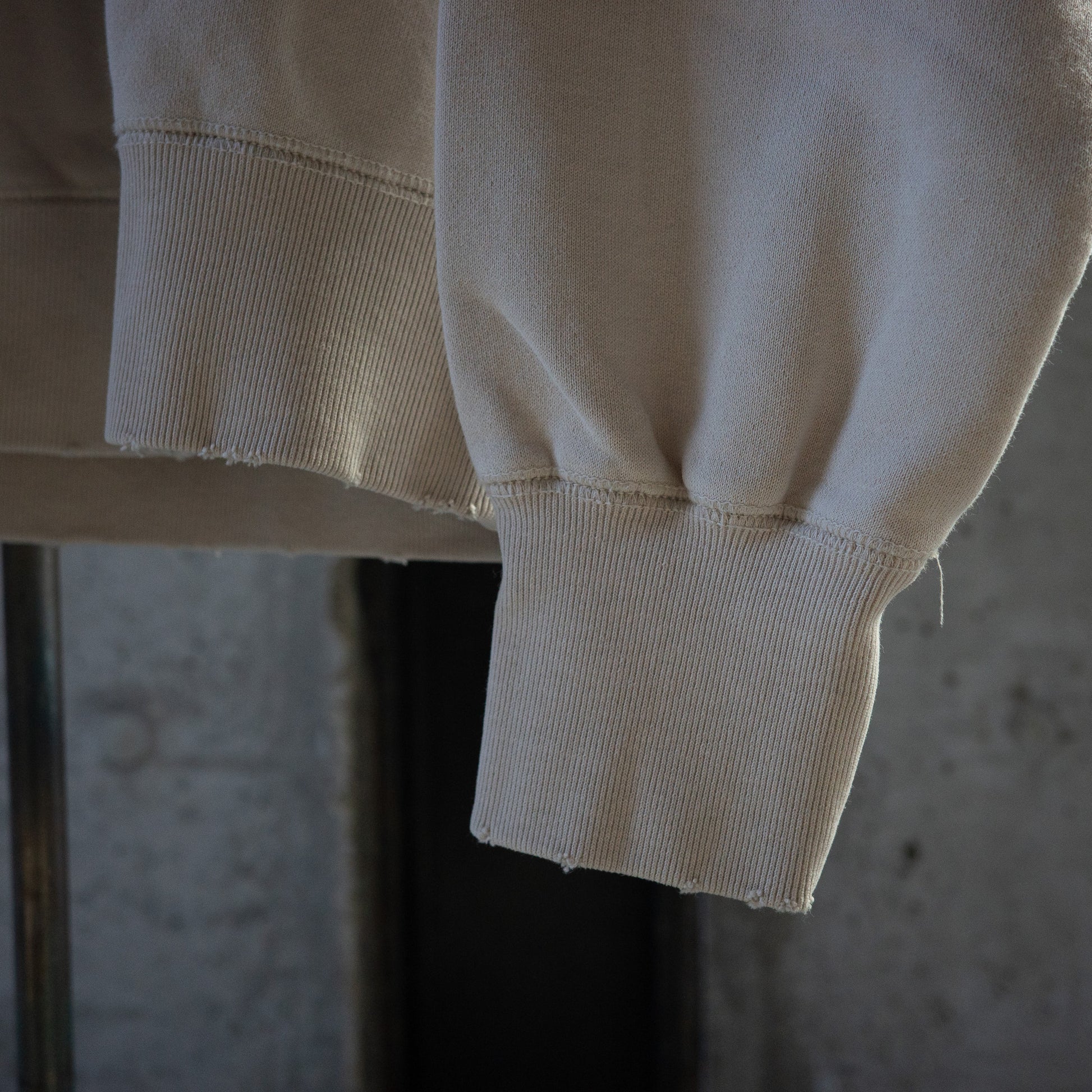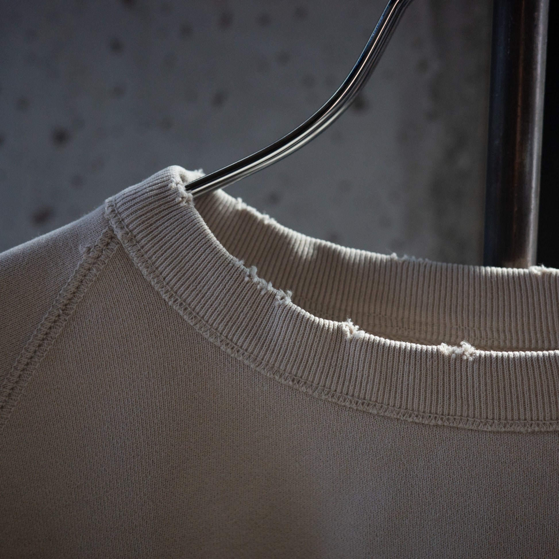 ネックや裾のリブにはグラインダー加工を施し、ダメージを表現。