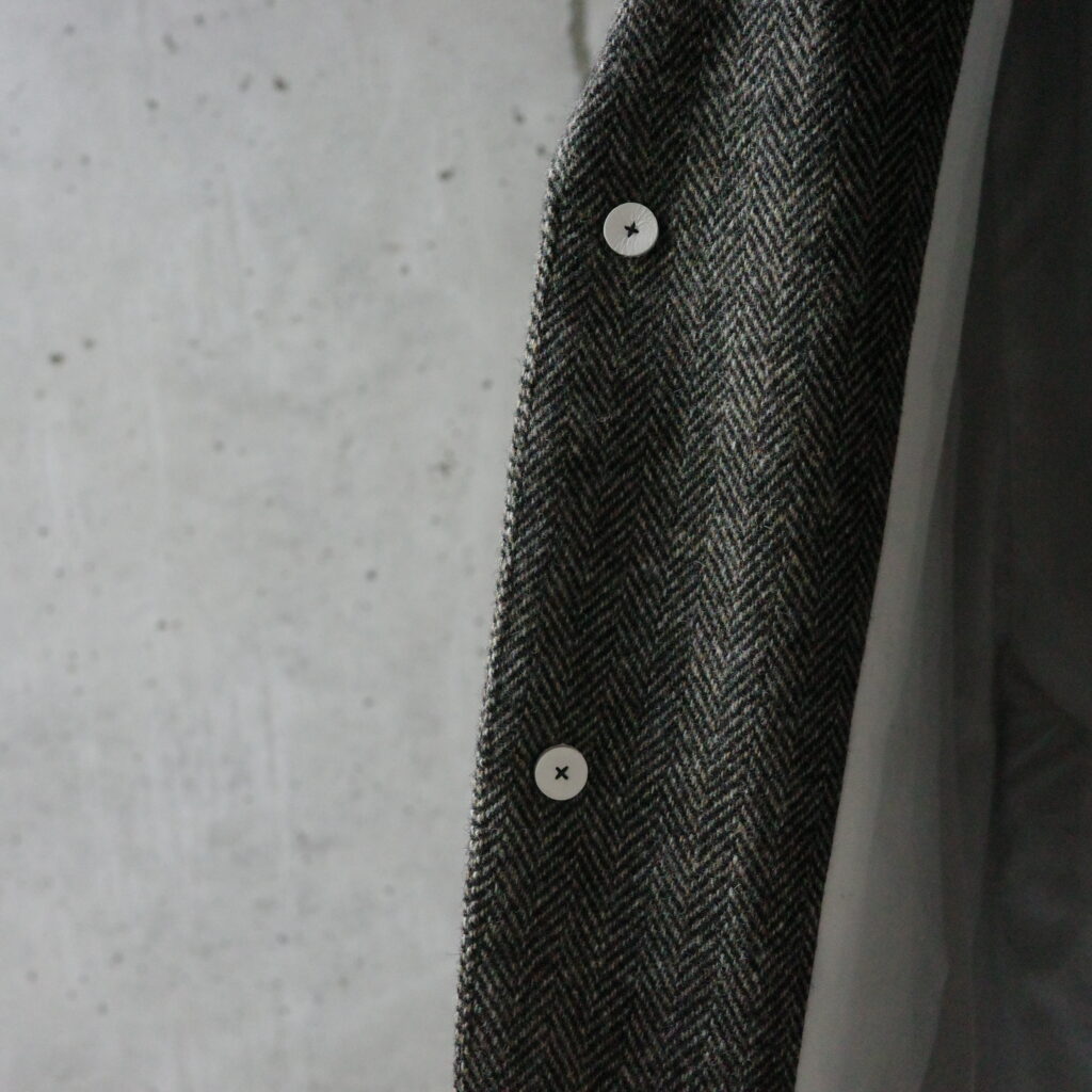 クラシカルな雰囲気のヘリンボーン素材を使い、身体に沿うようなパターンで作られた2024AW NEWモデル BLAZER
