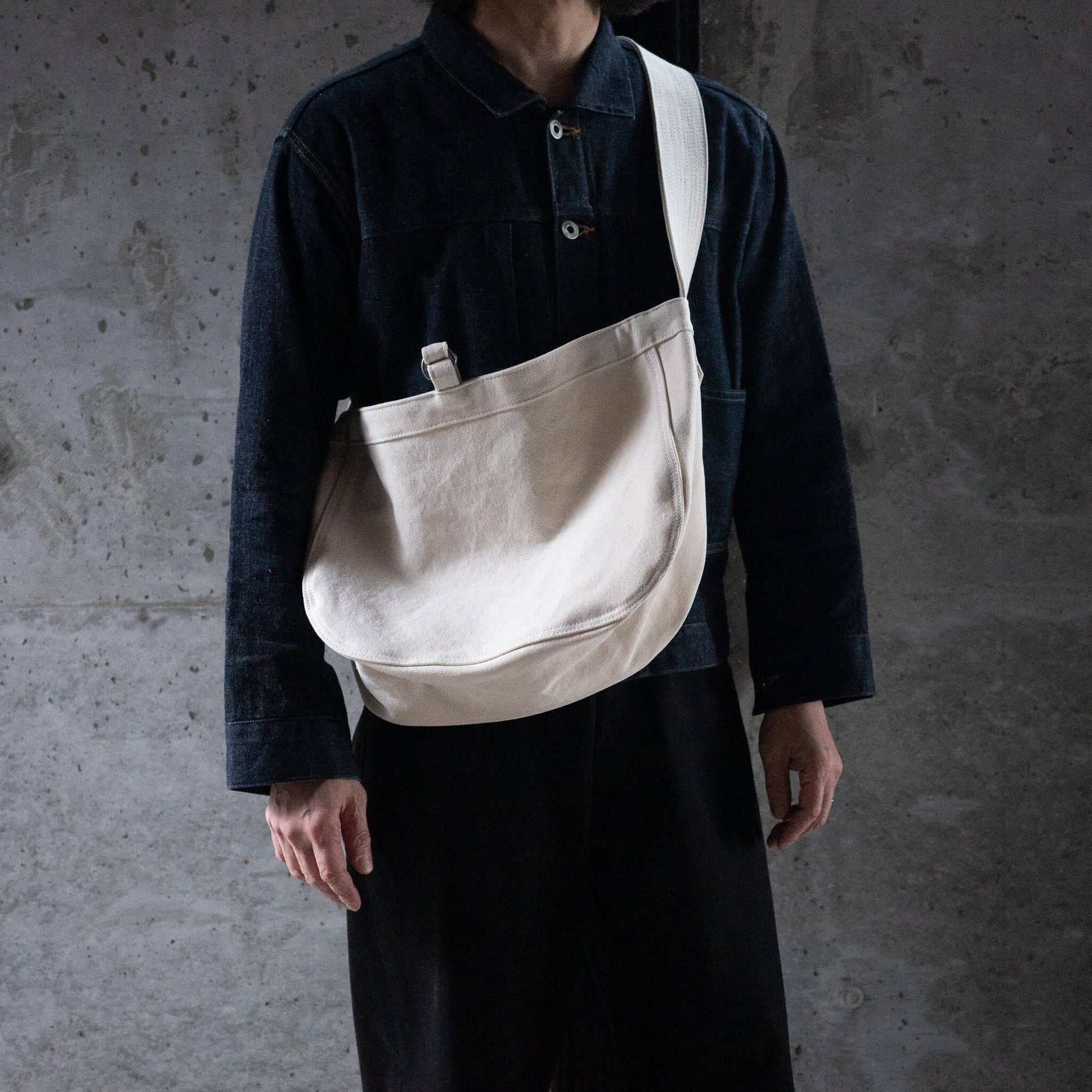 肩への負担を軽減する幅広のショルダーハンドルと、広いマチは当時の作りのまま、ショルダーハンドルの長さを短く調整し、ボディバッグのようにデザインしています。