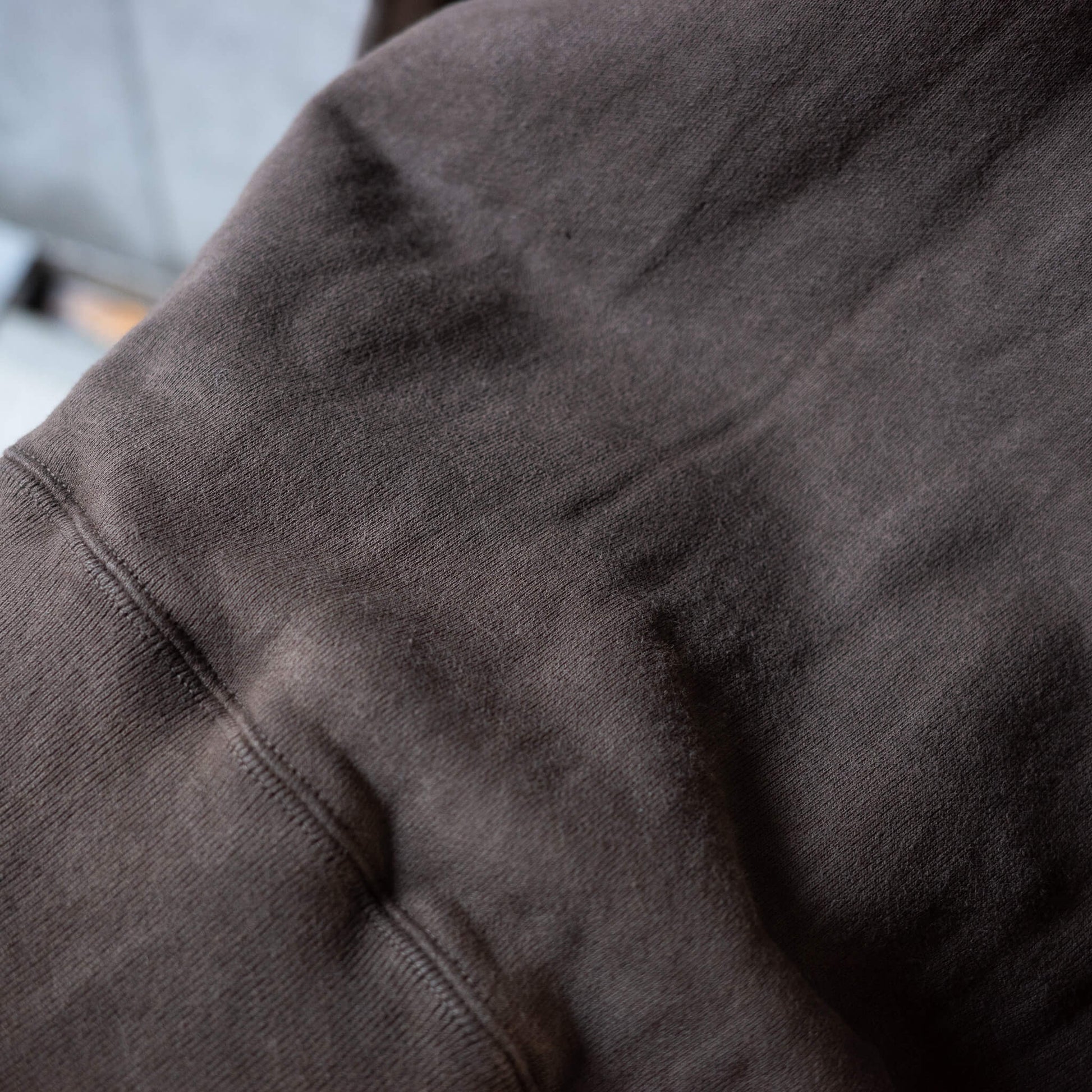 丸胴仕様の裏毛生地は、現存する吊り編み機で丁寧に編み立てられたもの。