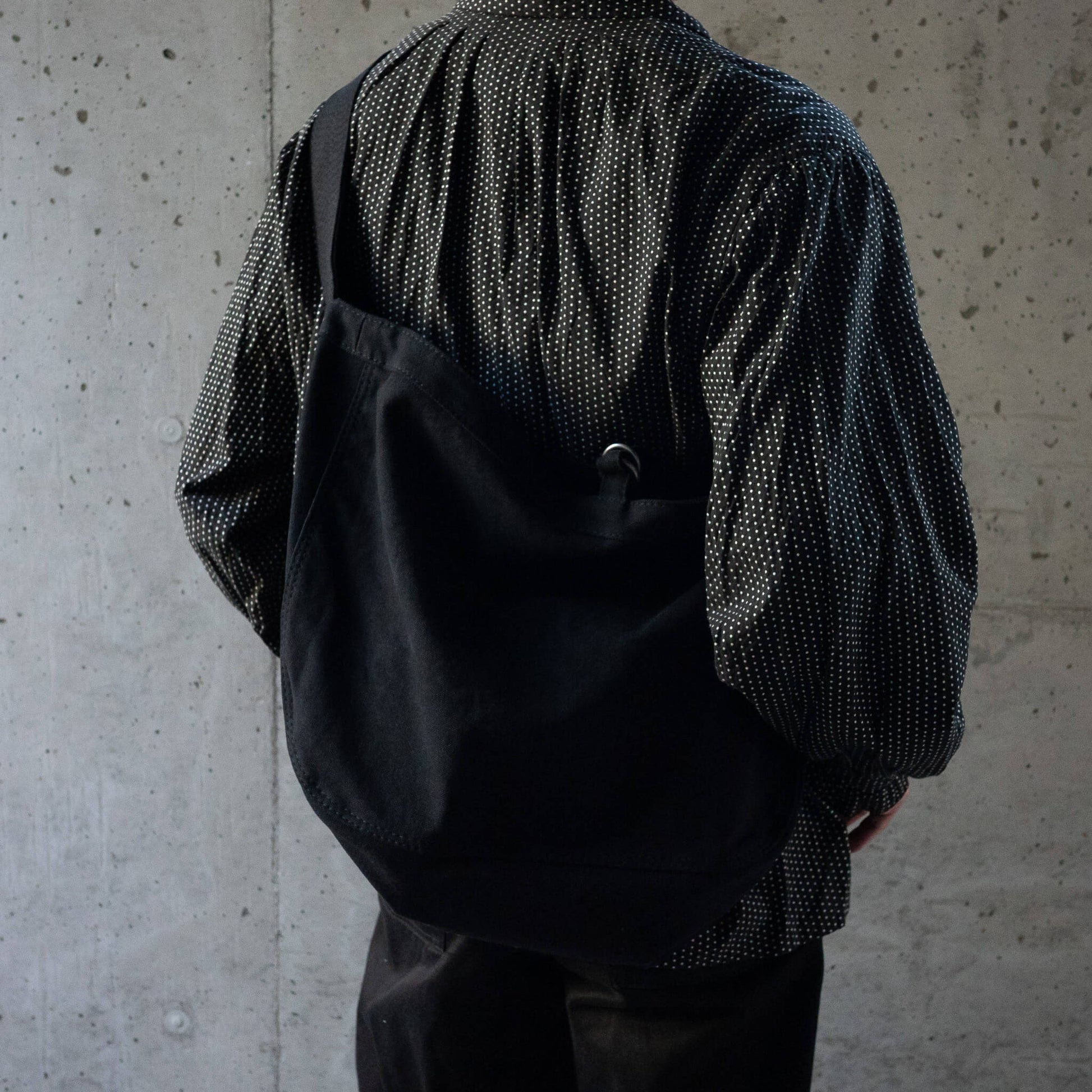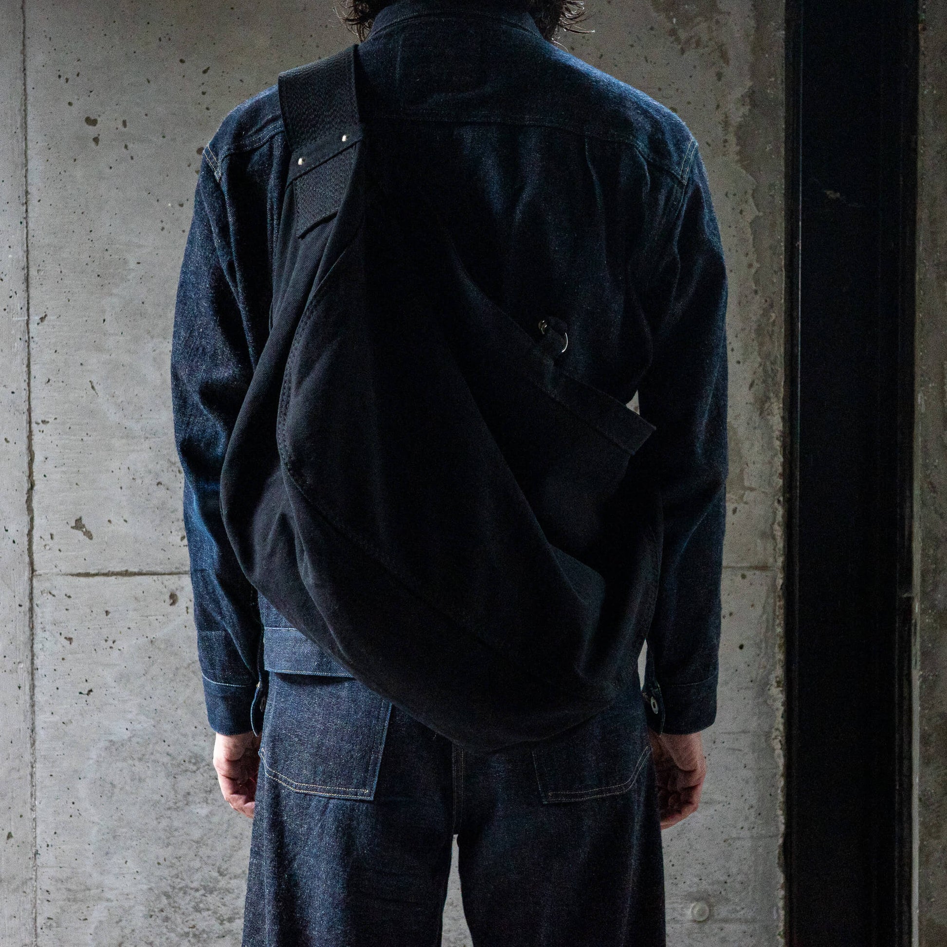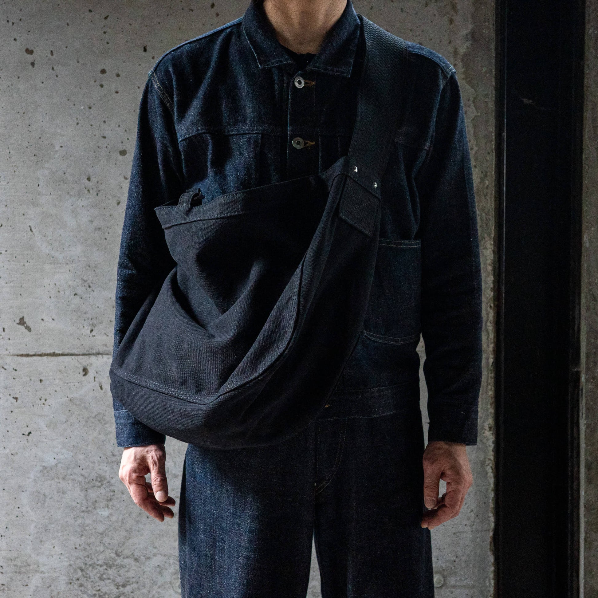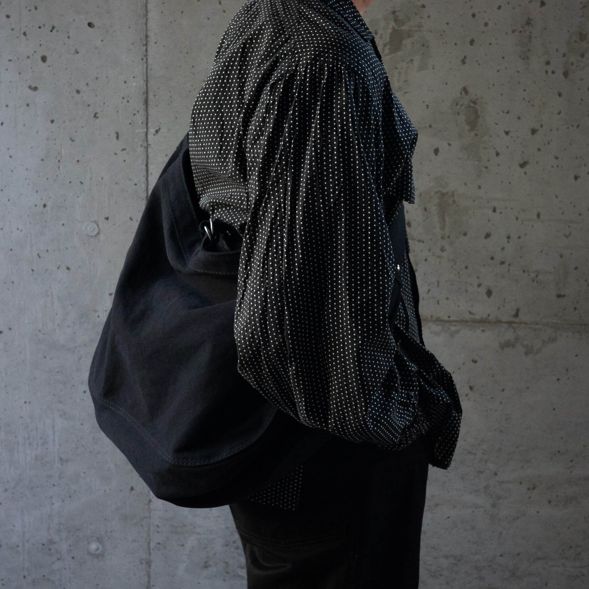 肩への負担を軽減する幅広のショルダーハンドルと、広いマチは当時の作りのまま、ショルダーハンドルの長さを短く調整し、ボディバッグのようにデザインしています。