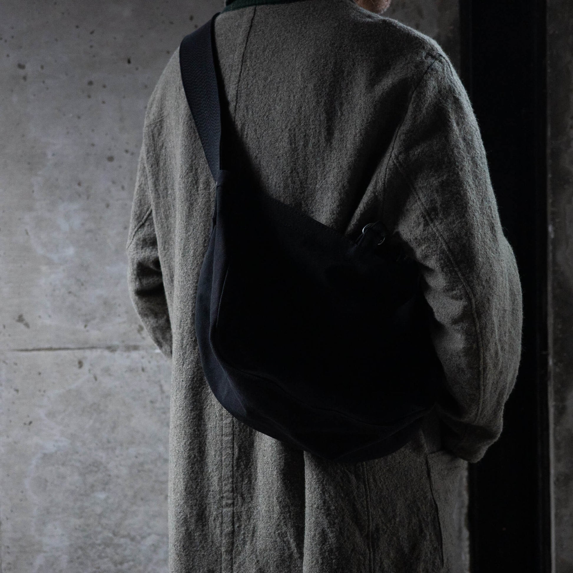 肩への負担を軽減する幅広のショルダーハンドルと、広いマチは当時の作りのまま、ショルダーハンドルの長さを短く調整し、ボディバッグのようにデザインしています。