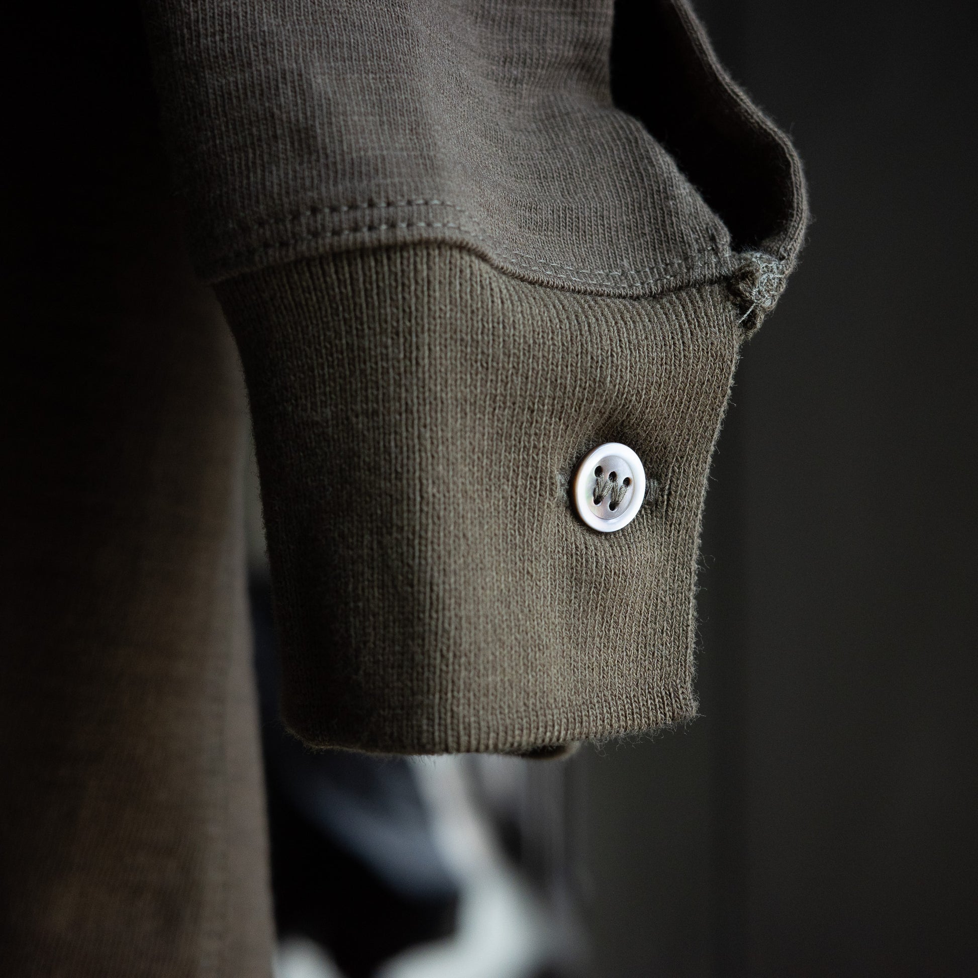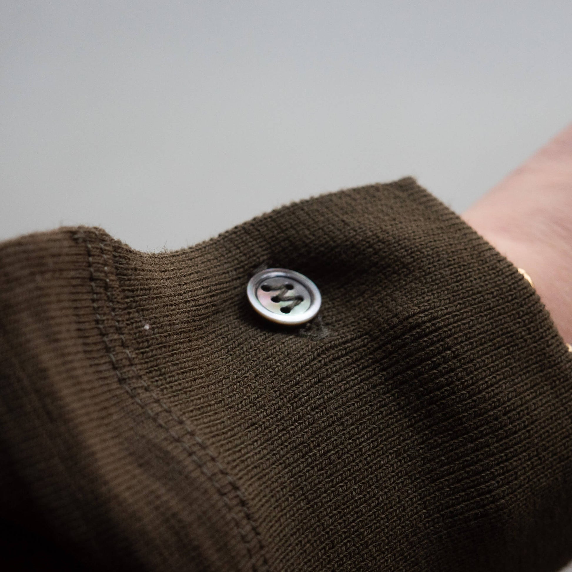 第二ボタンと左袖には5つ穴のボタンを採用し、「W」の文字で縫い付けられた、さりげないアクセントも効いています。